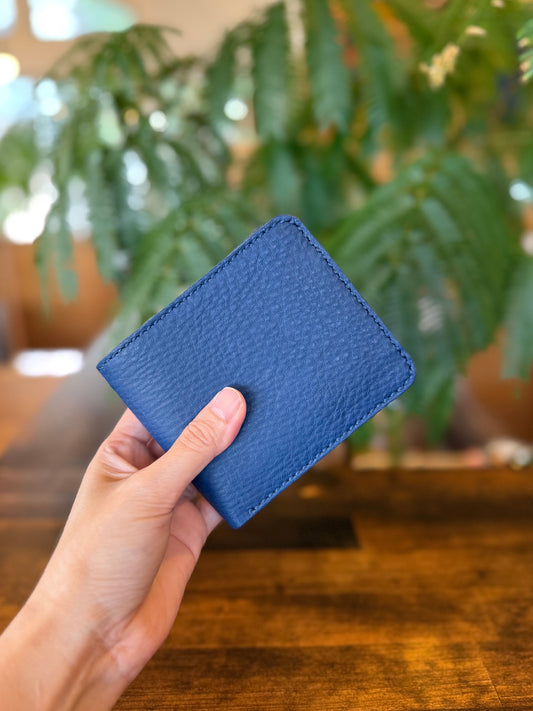 【蝦夷鹿革】二つ折り財布(ブルー)