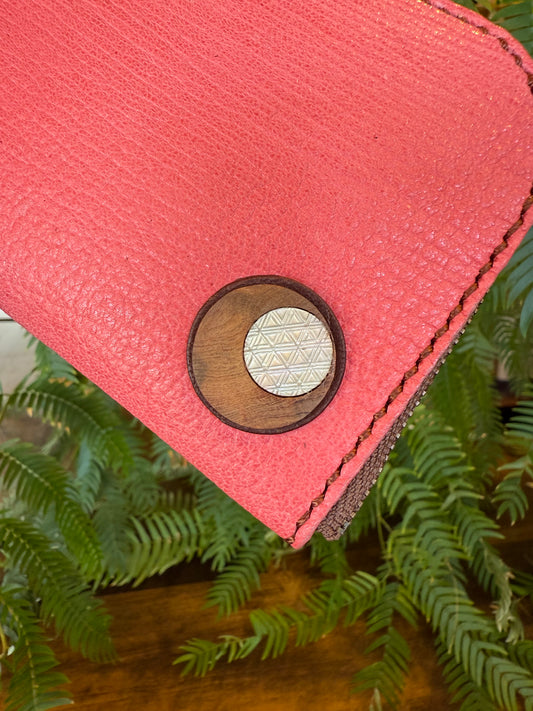 【屋久鹿革】島財布セミロング(カードポケット・屋久杉と夜光貝の切子柄ボタン付)