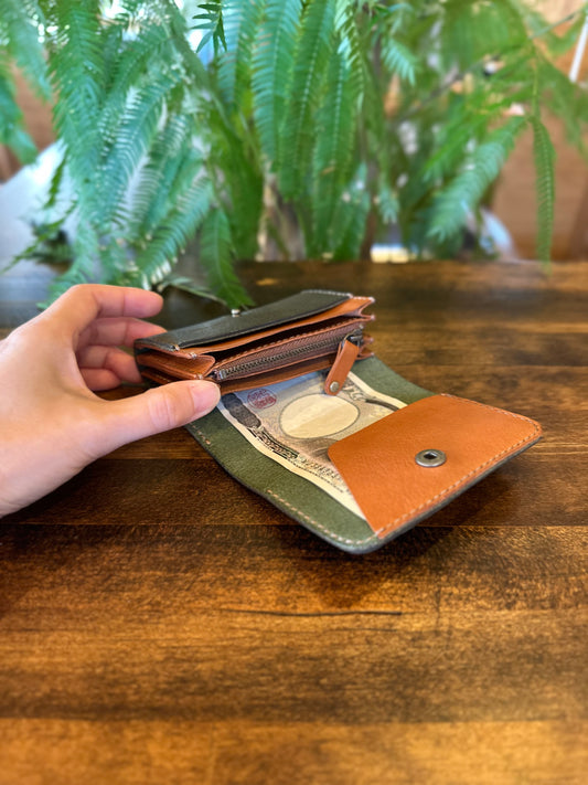 Sold out【屋久鹿革】こぢんまり財布(カーキ)