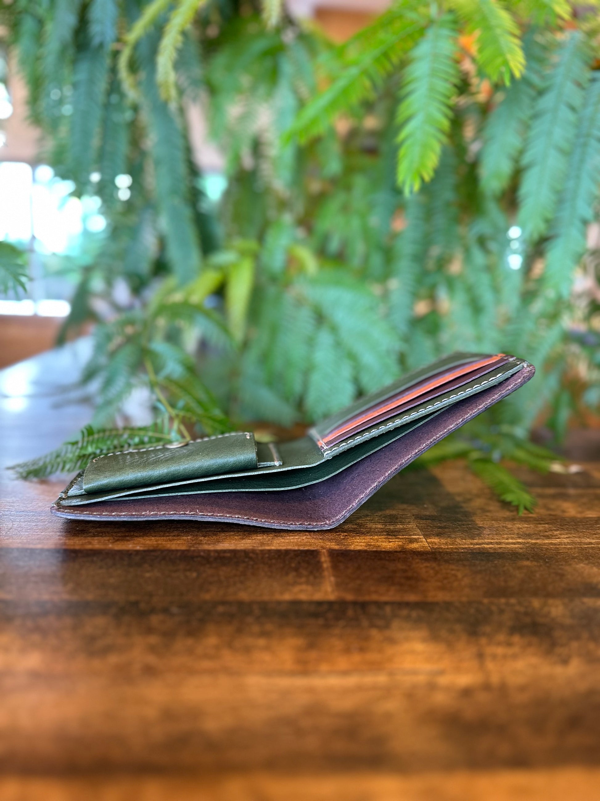 There are 4 card pockets, 1 side pocket, 1 card pocket on the back of the coin case, and a compartment for bills.
