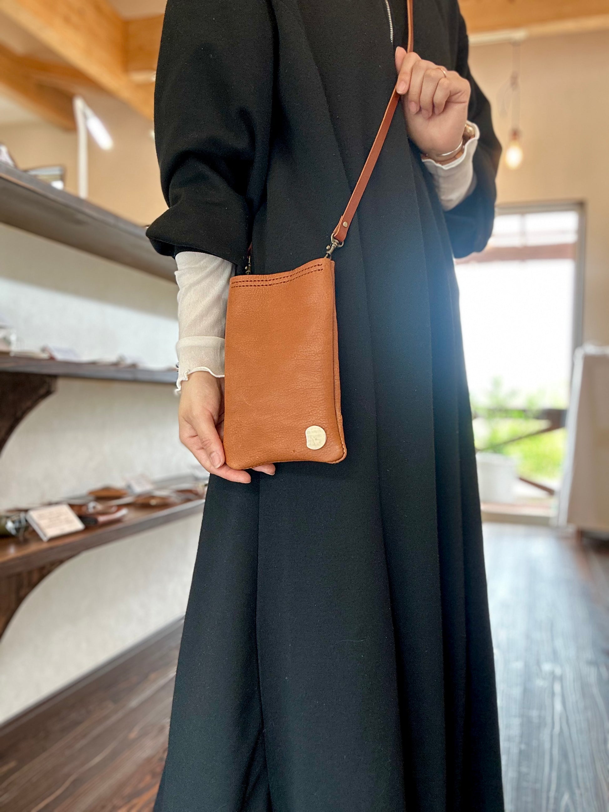 サコッシュ・京鹿革×屋久鹿のツノ(ブラウン)