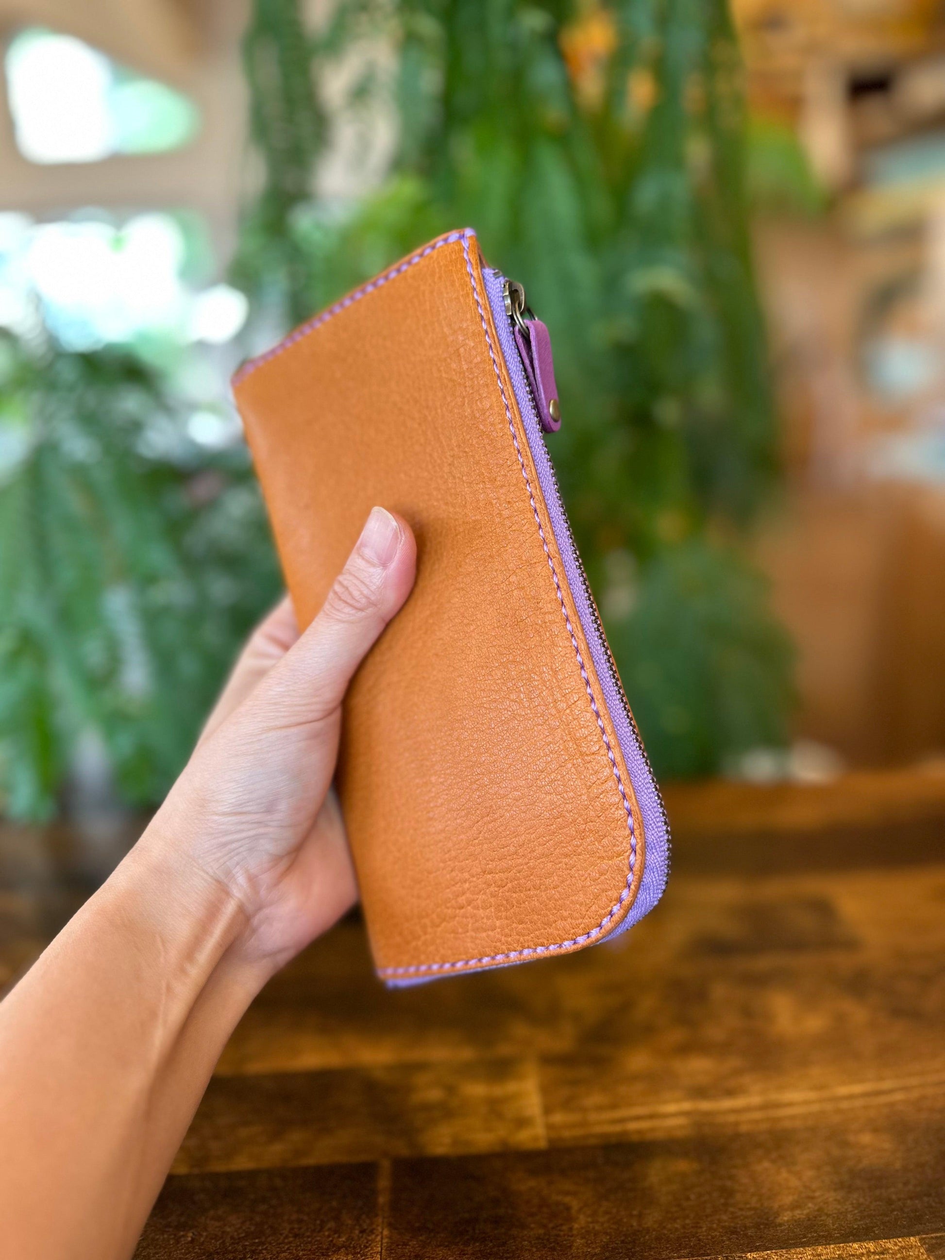 財布届いて、ステッチの綺麗さと屋久鹿革の触り心地の良さに感動しました!