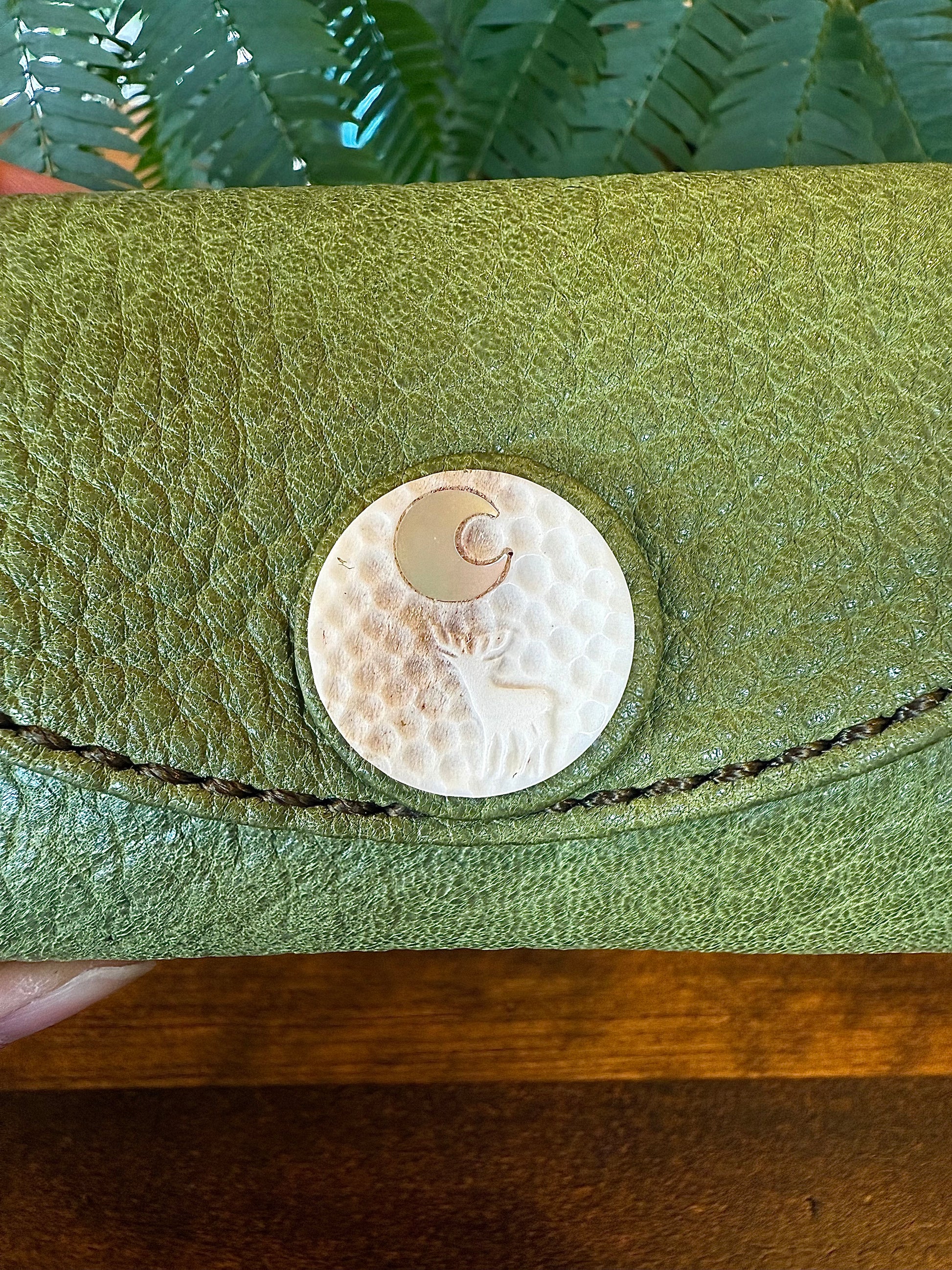 【屋久鹿革】おさいふ名刺入れ (ツノにヤクシカレリーフ・夜光貝の三日月)
