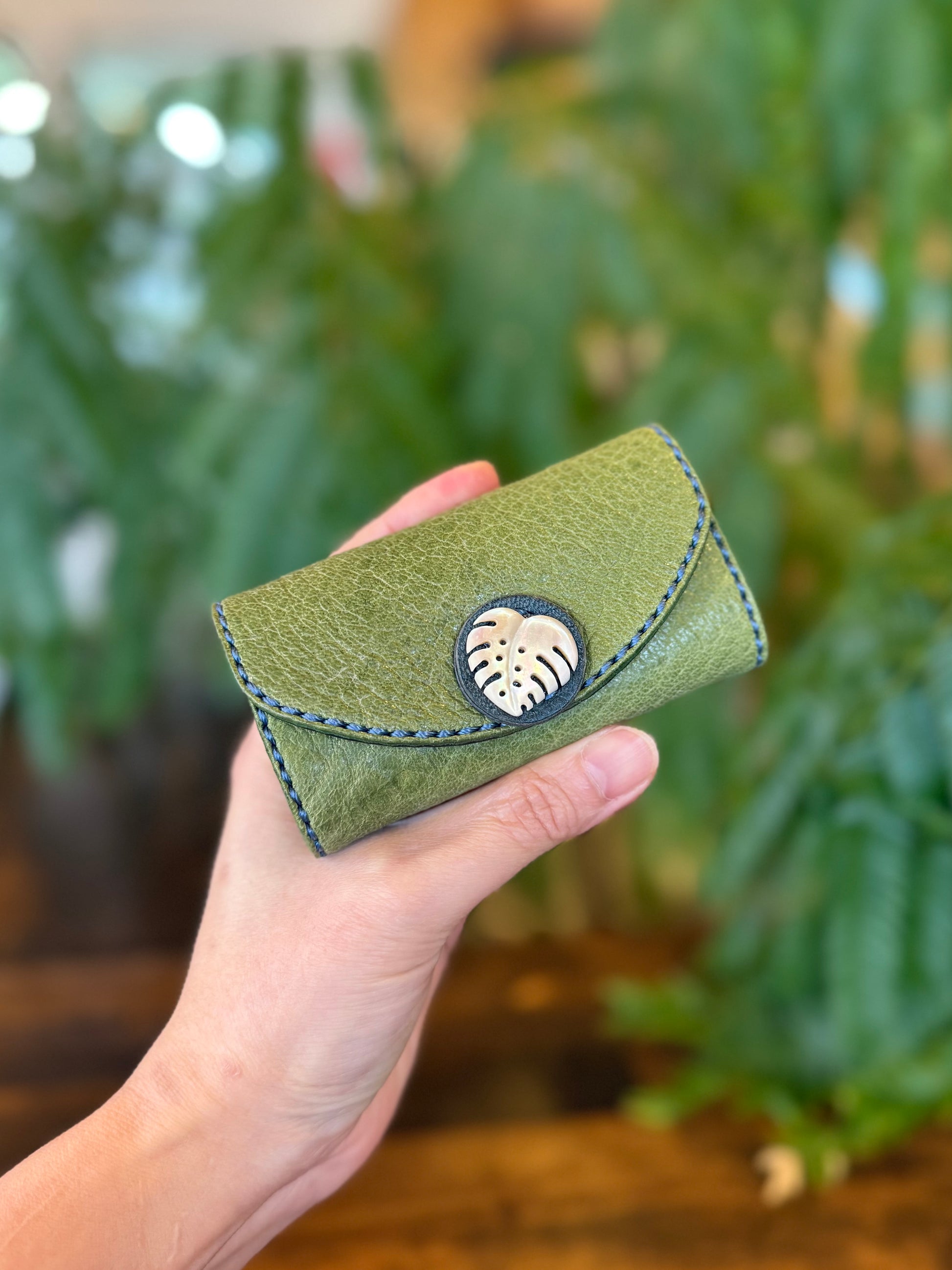 夜光貝のモンステラ 飾りボタン付き。モンステラは屋久島を代表する植物の1つです。