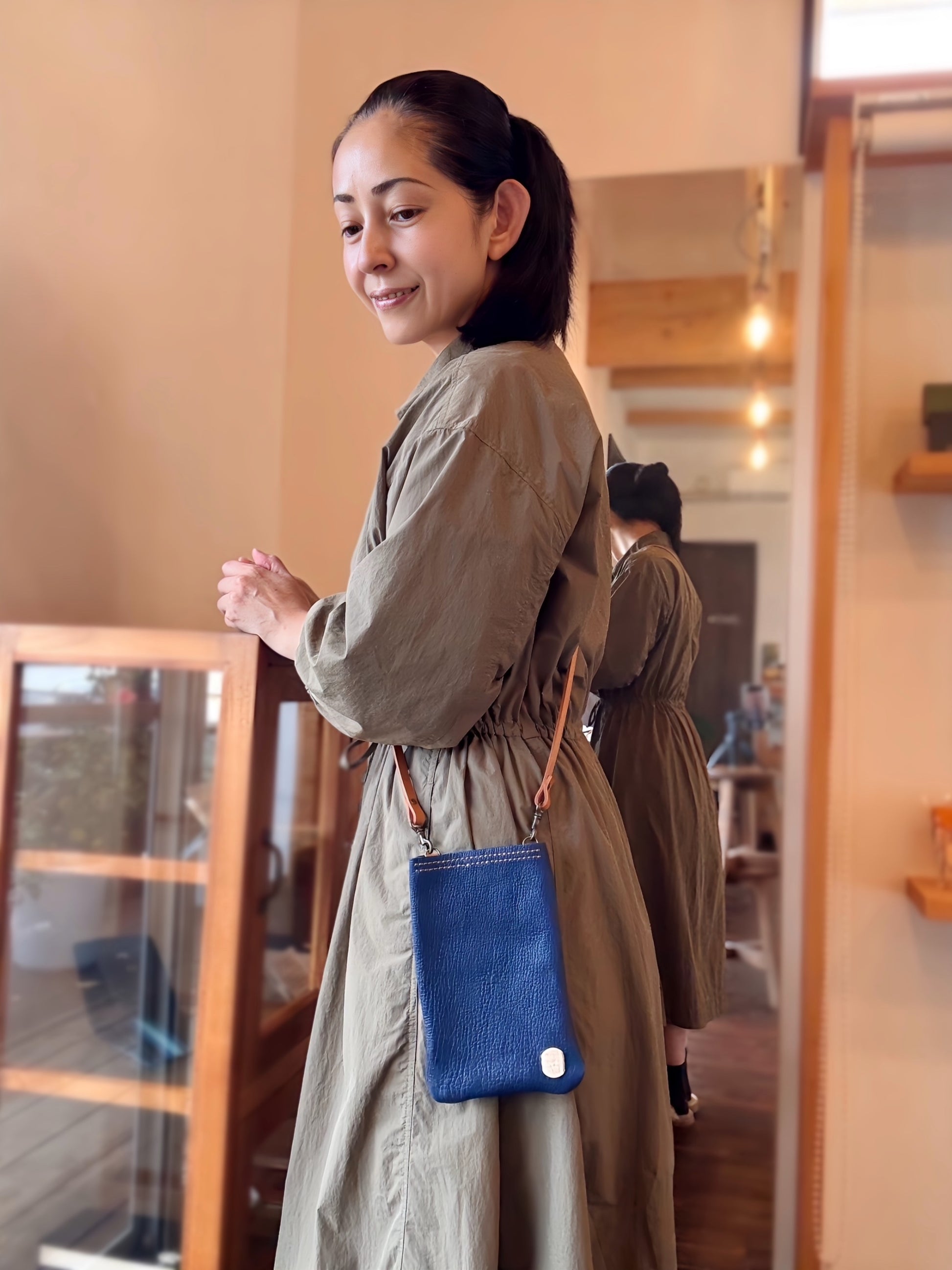 サコッシュ・京鹿革×屋久鹿のツノ(ブルー)