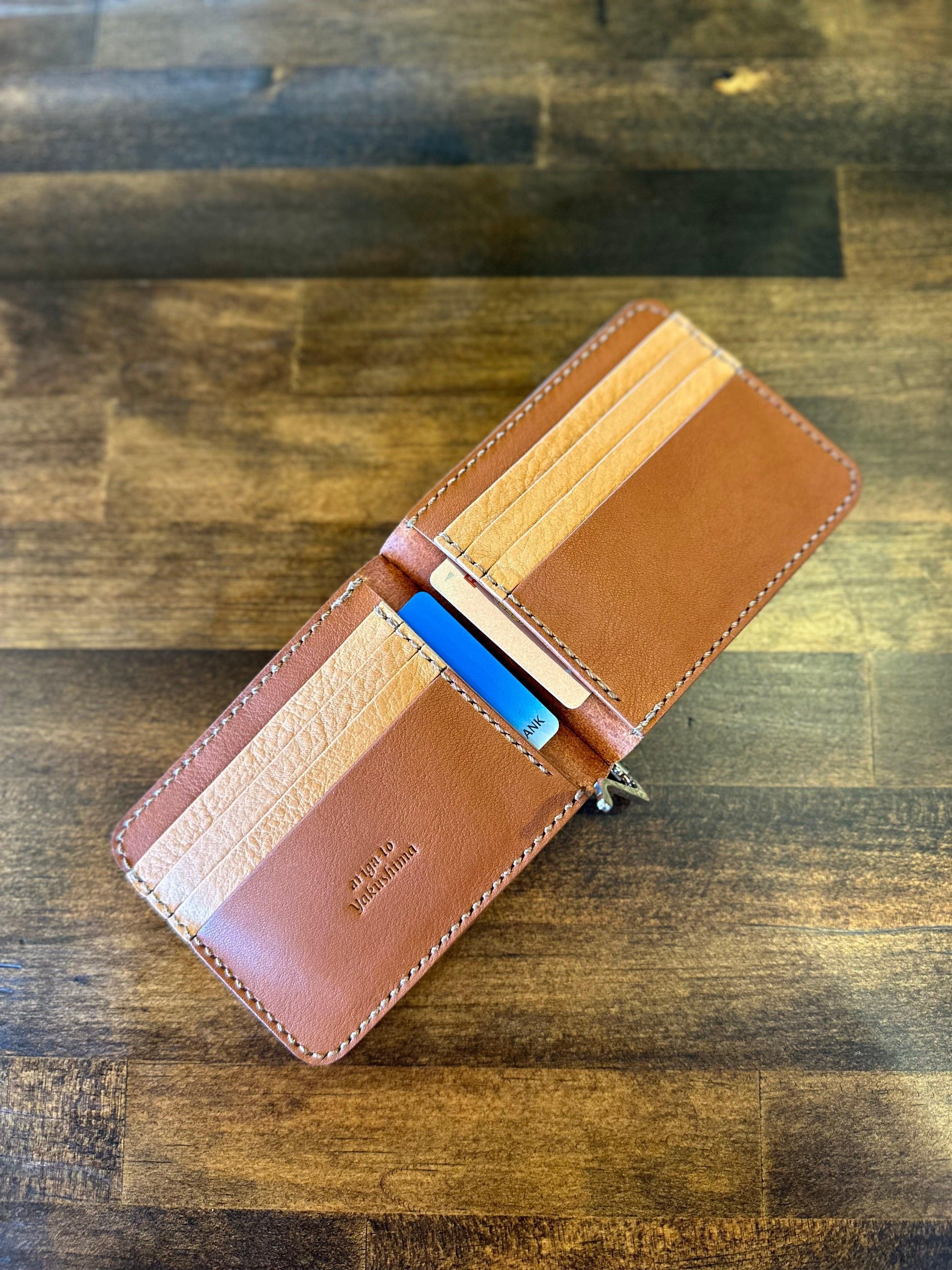 表の革には屋久島に生息する屋久鹿の革をキャメルに染めた革を使用