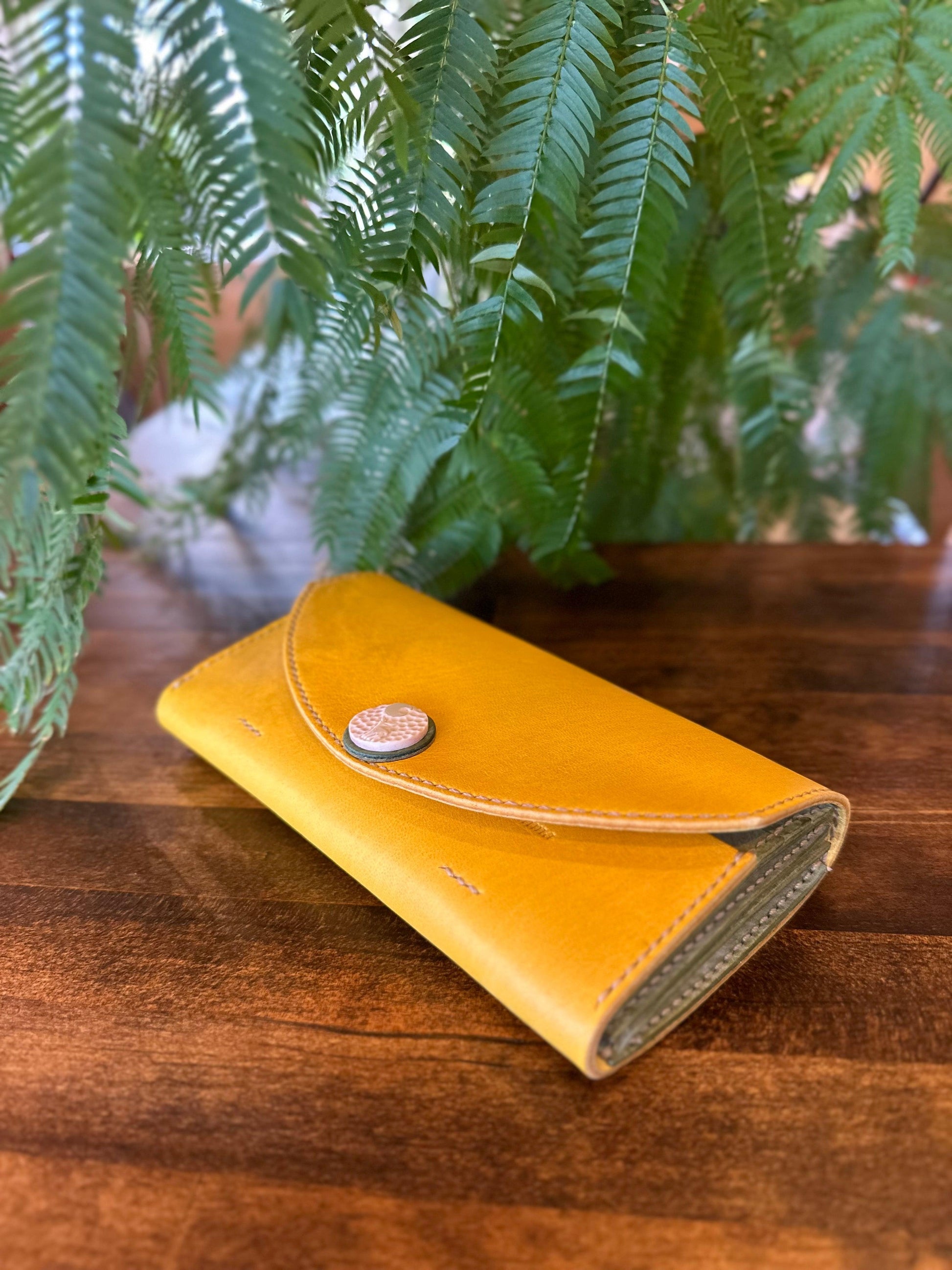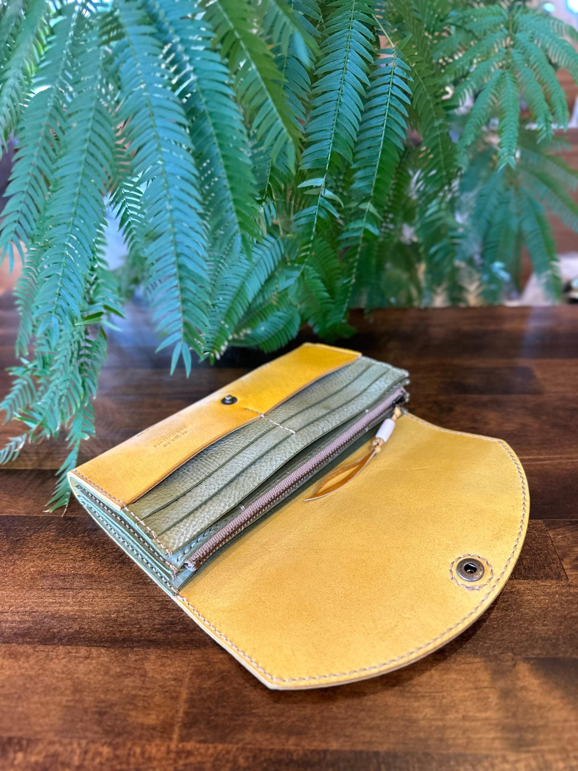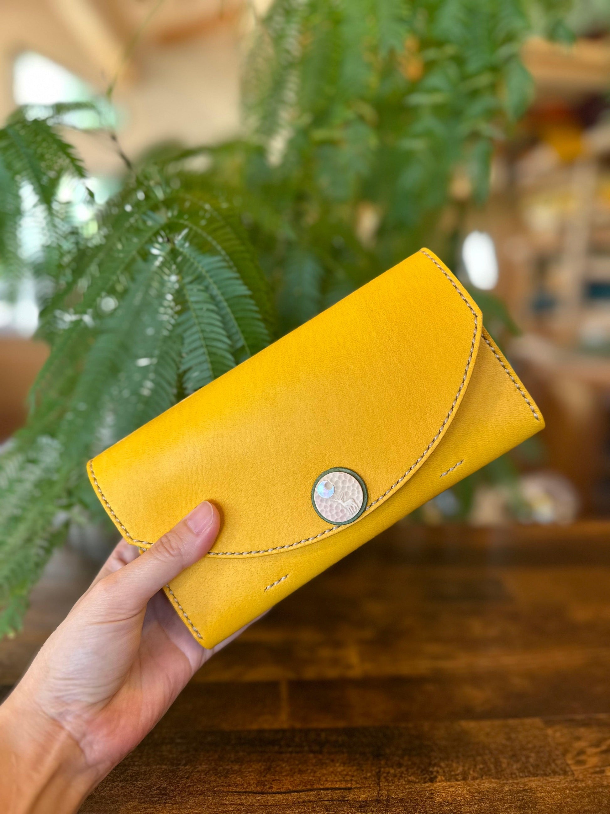 表の革には屋久島に生息する屋久鹿の革・菜の花色