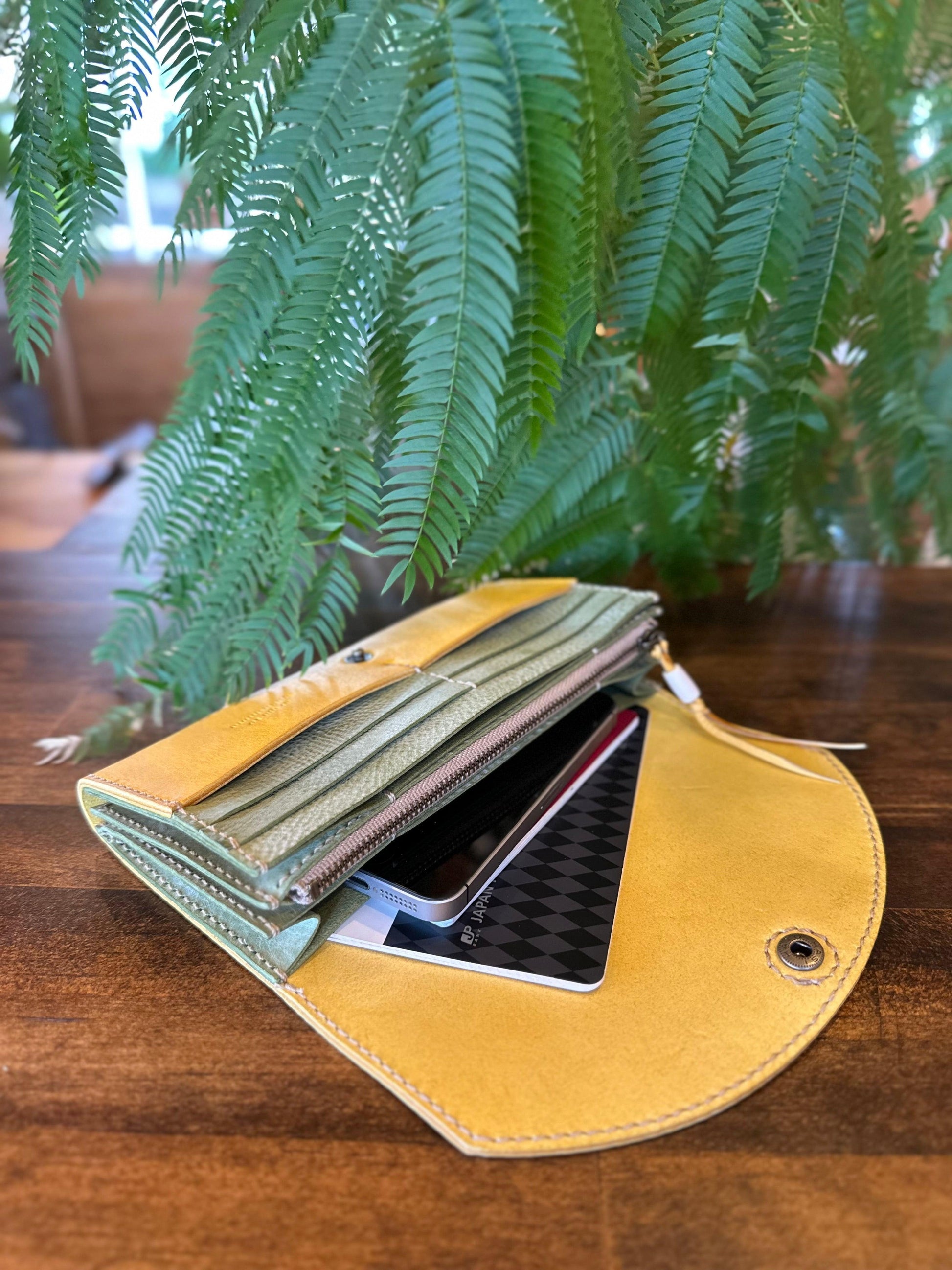 機種によりますがスマートフォンや通帳も収納可能で、貴重品をひとまとめにできるオールインワンのお財布です。