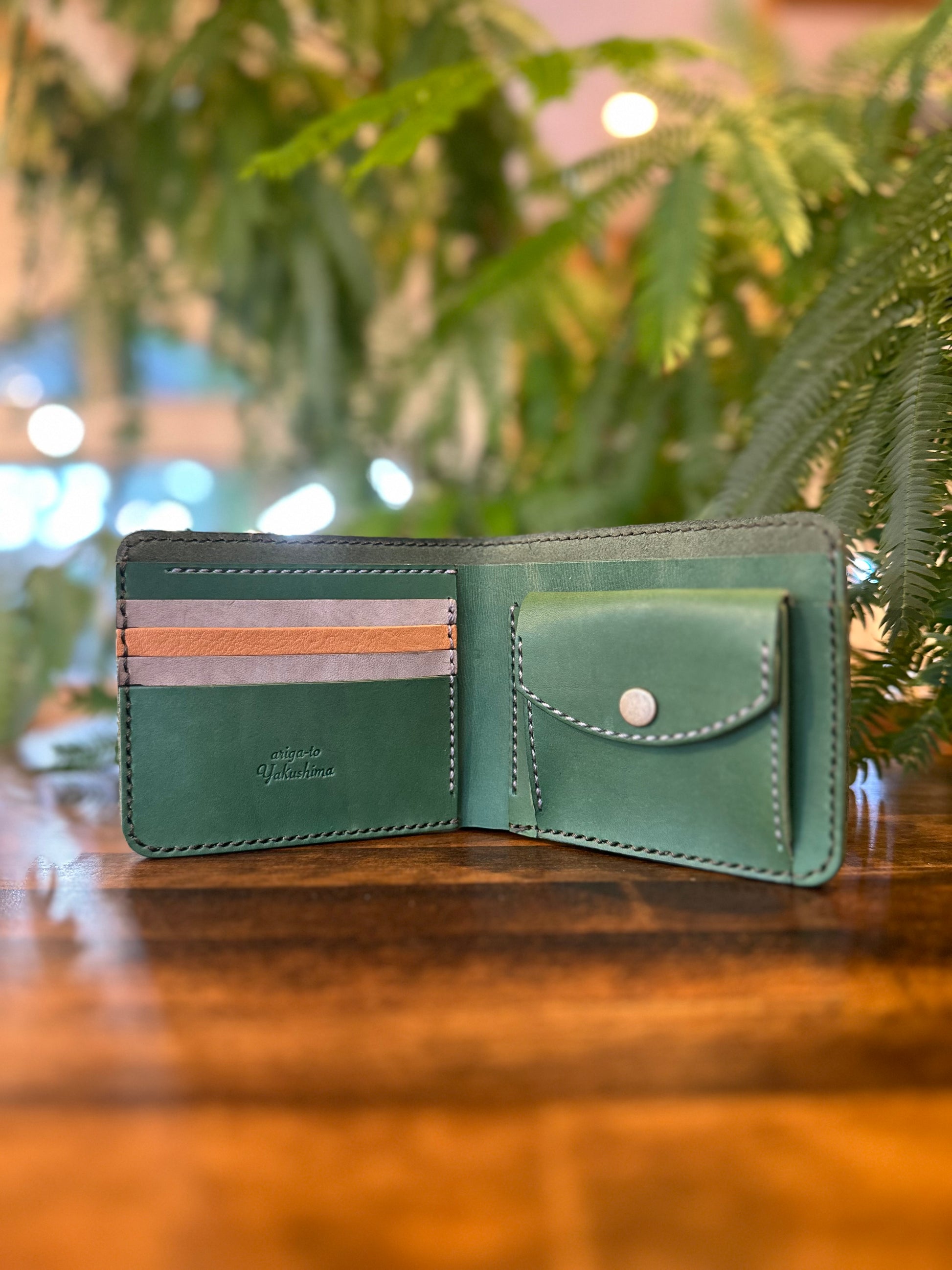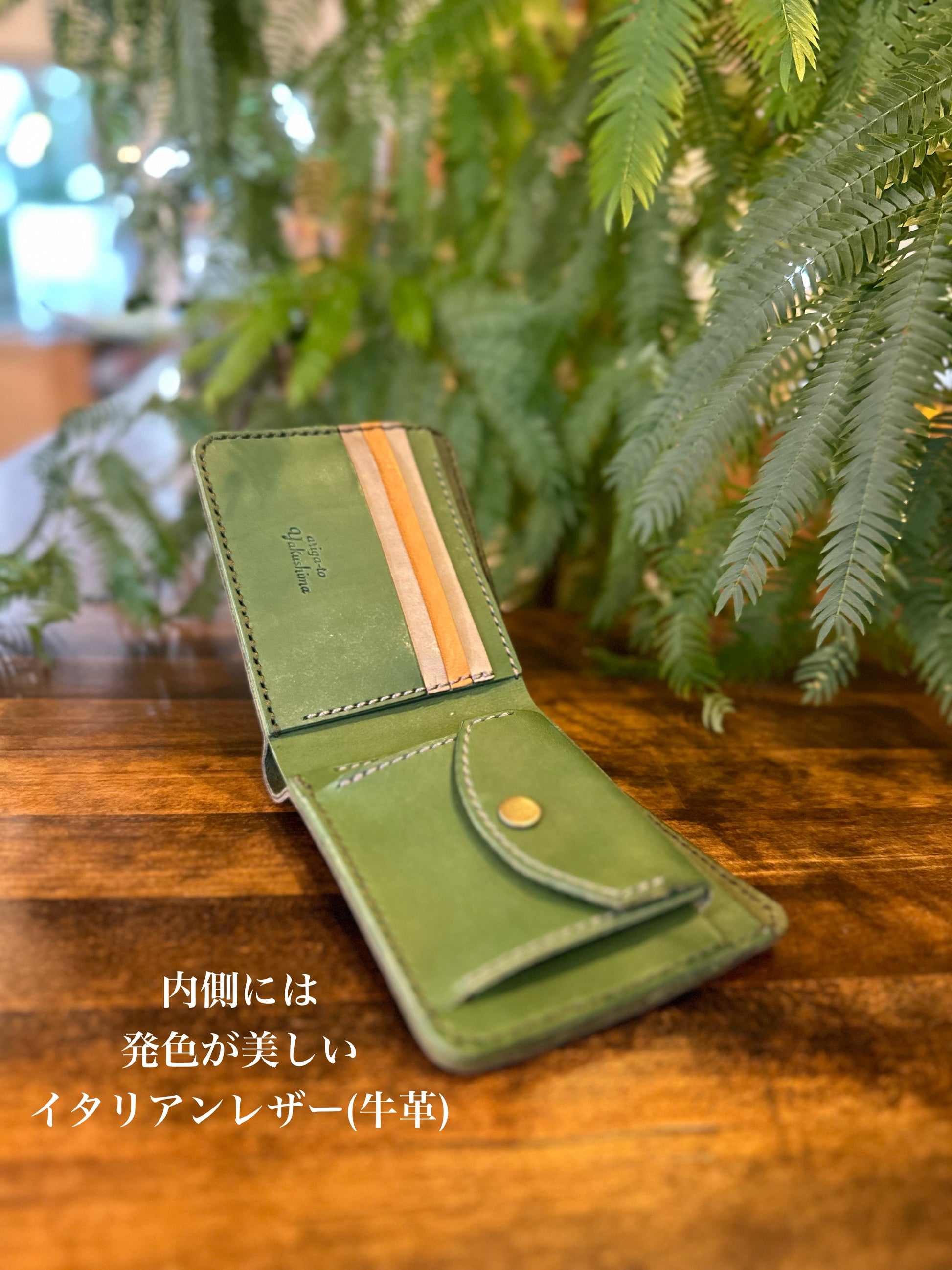 表の革には屋久島に生息する屋久鹿の革・カーキ色