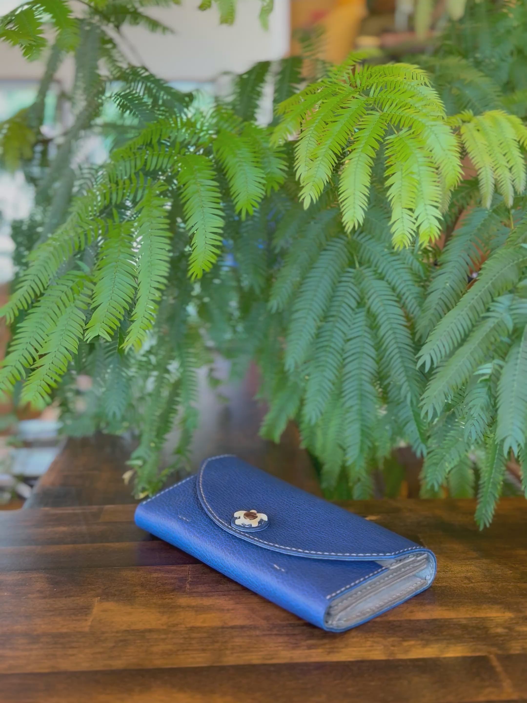 【蝦夷鹿革】ウミガメのロングウォレット(ブルー)【受注生産】