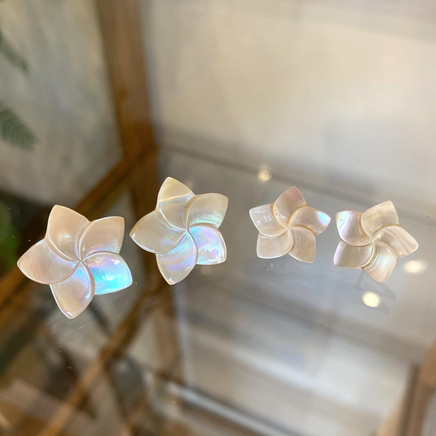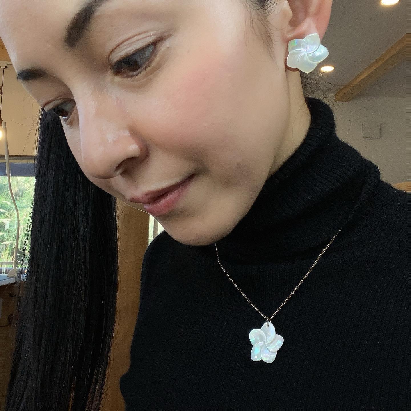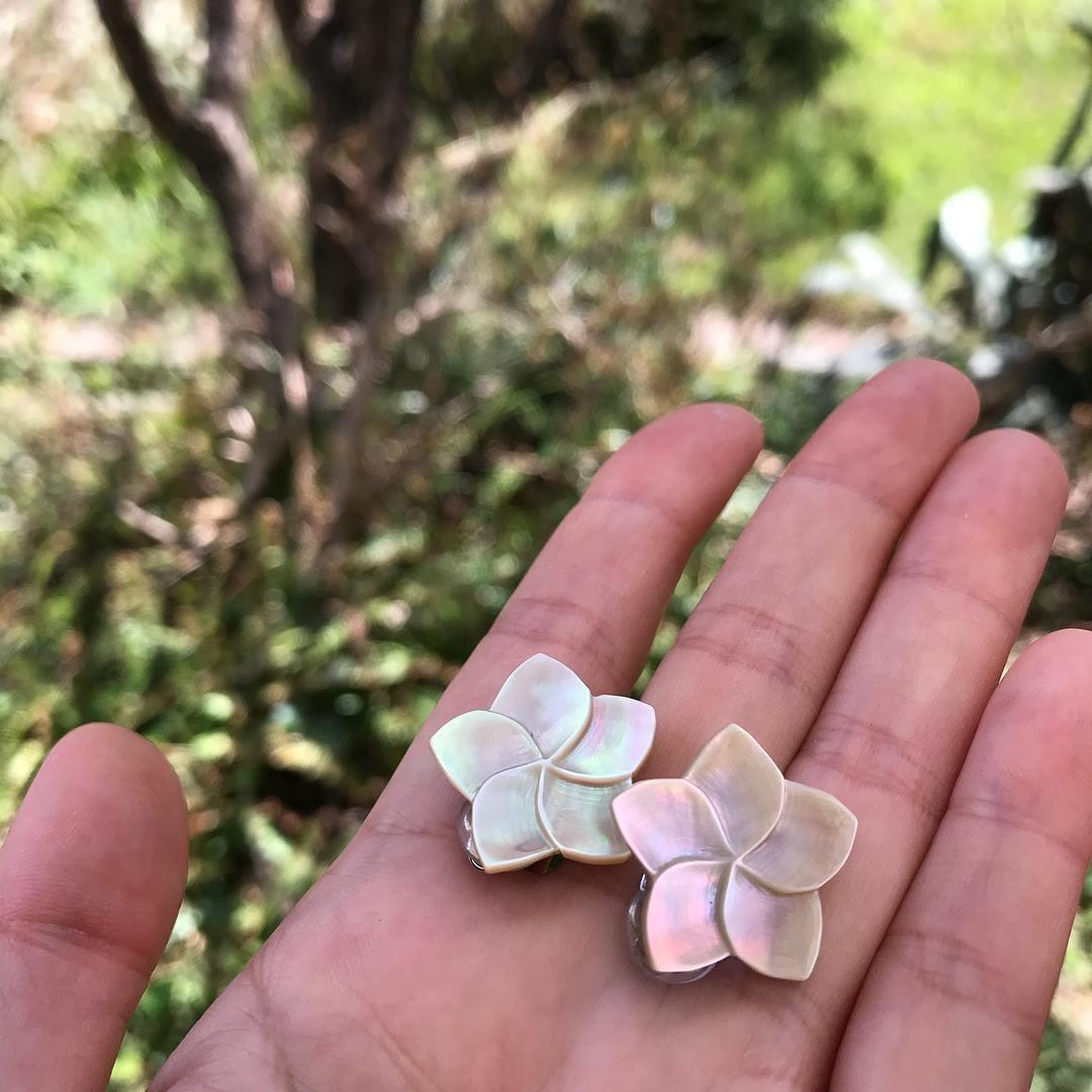 屋久島産天然の夜光貝細工、プルメリアのピアス&イヤリングです。