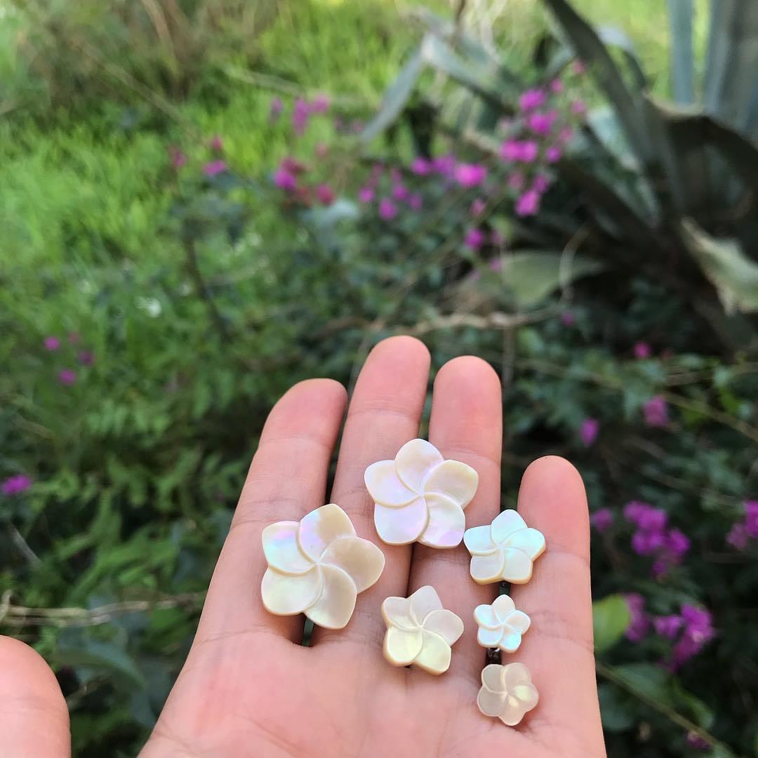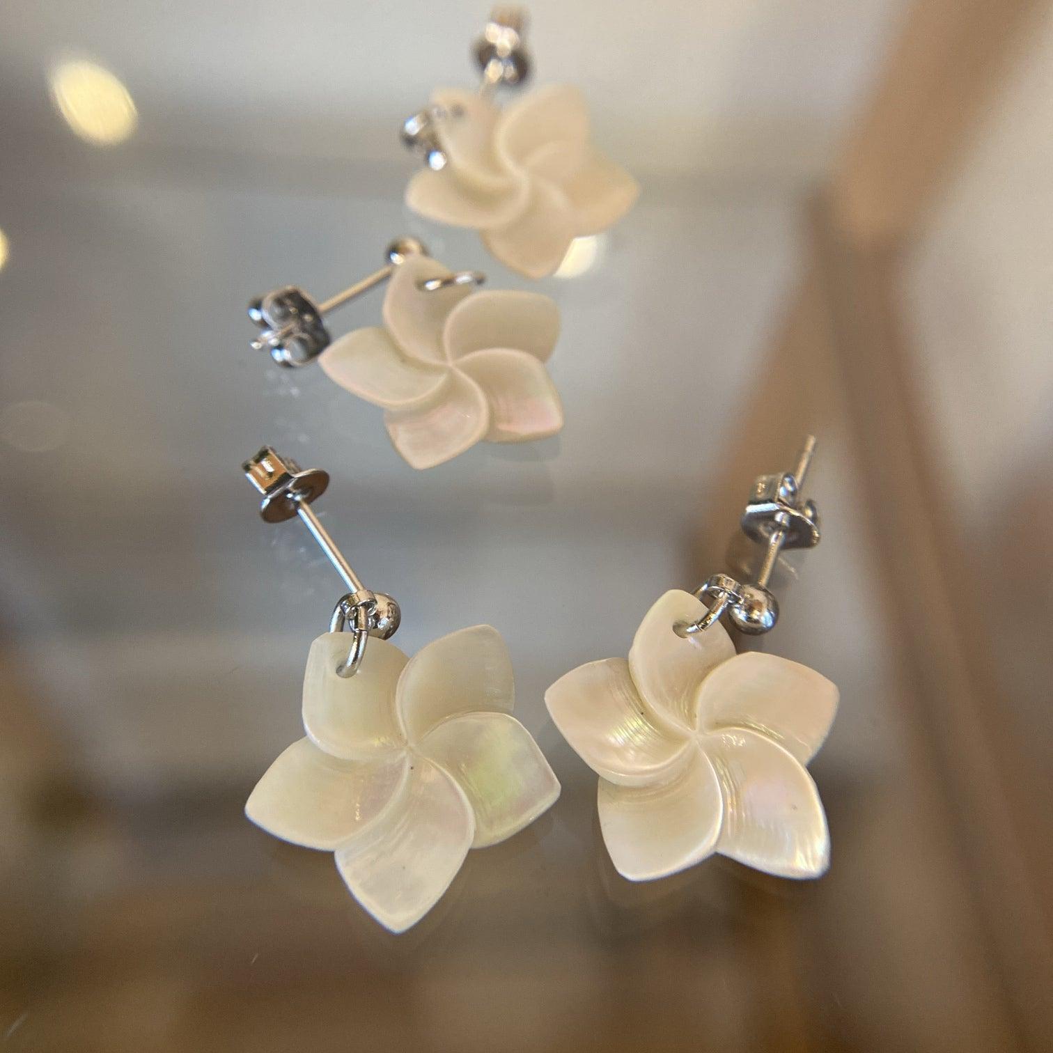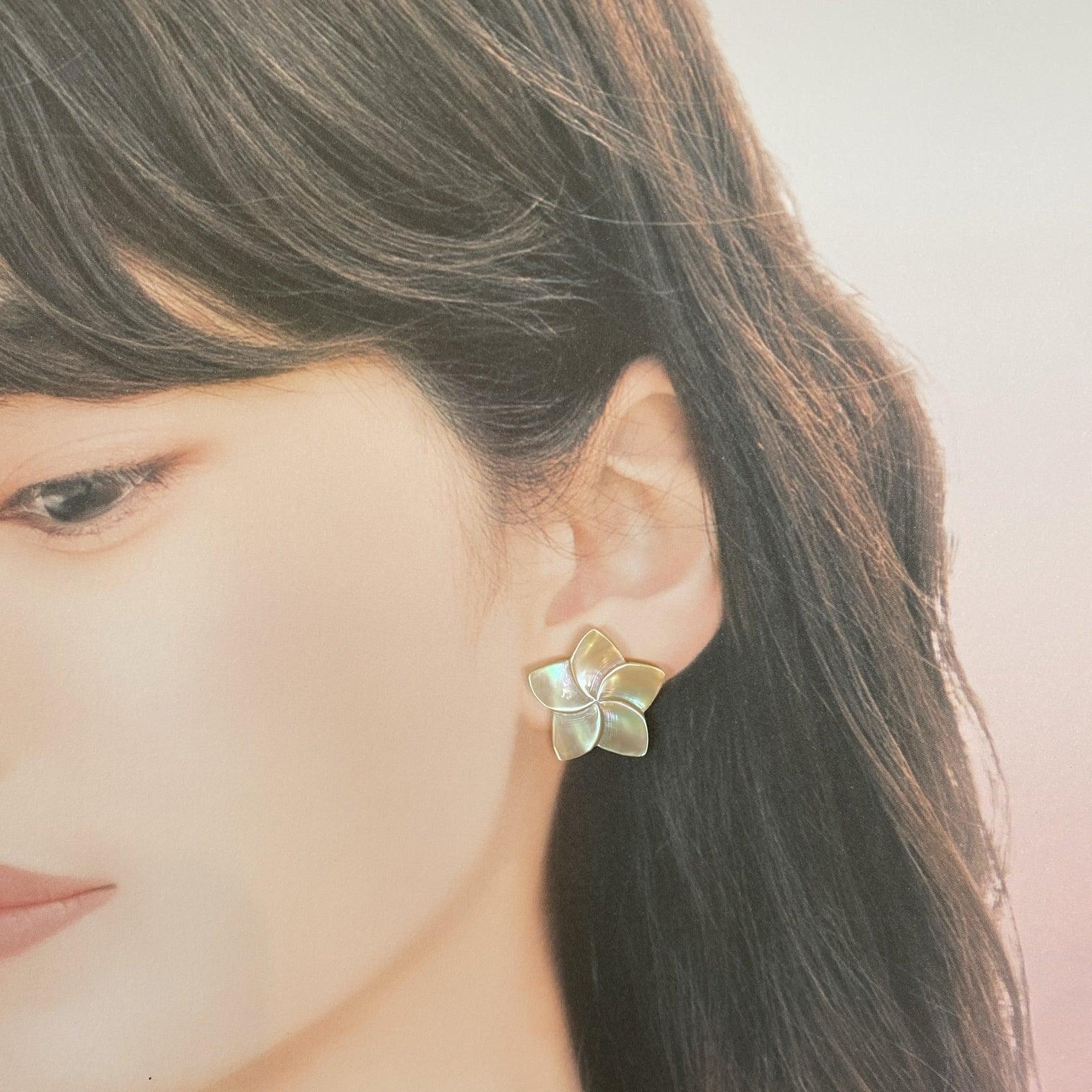 屋久島産天然の夜光貝細工、プルメリアのピアス&イヤリングです。