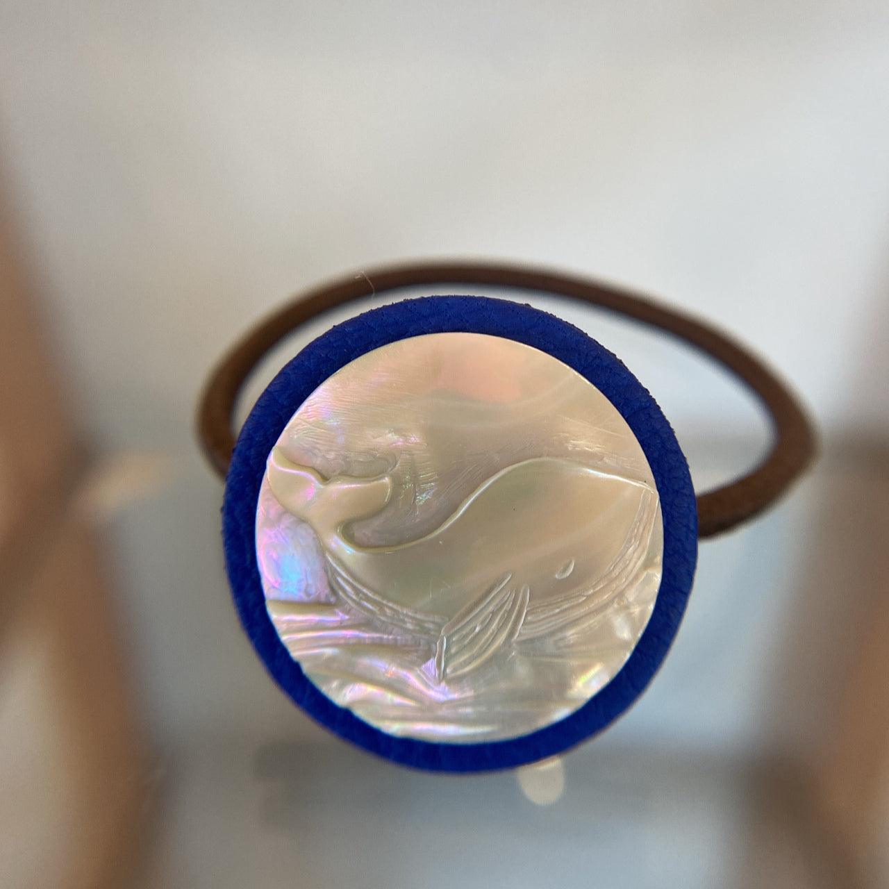 屋久鹿レザーと夜光貝細工を組み合わせたヘアゴムになります。