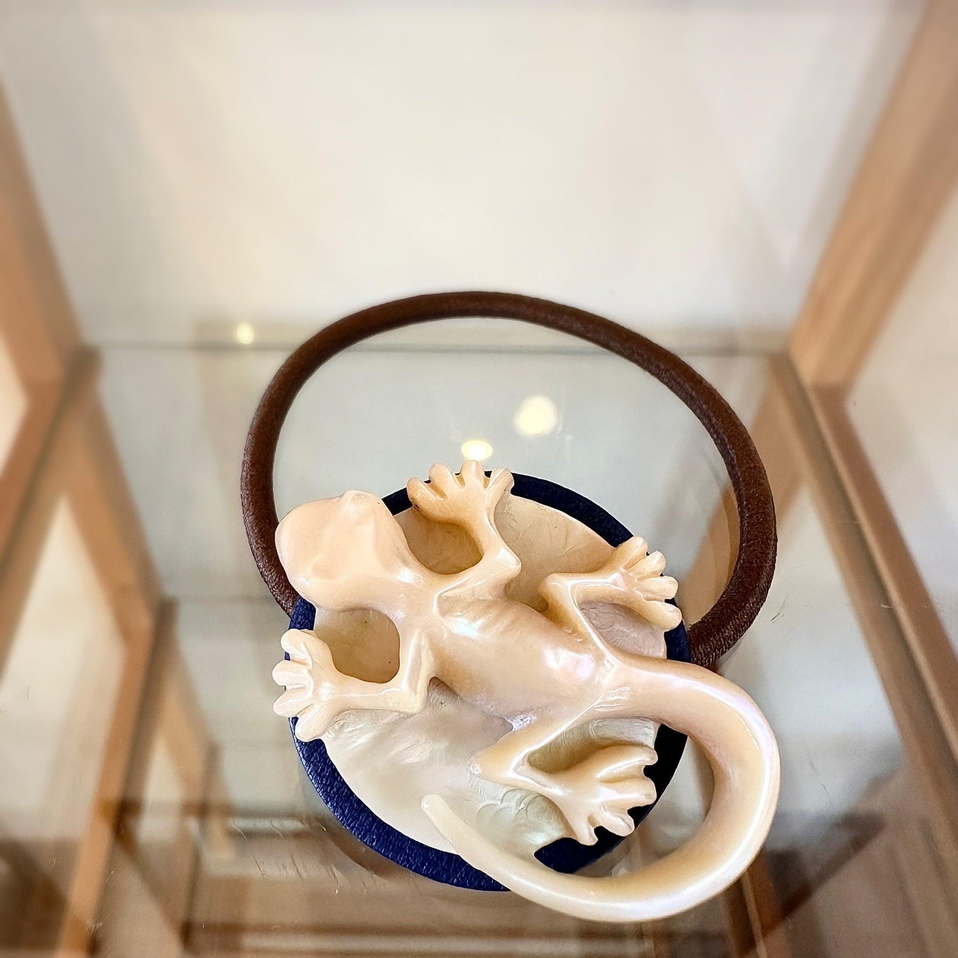 夜光貝のヤモリ…土台の丸い部位が直径21mm(ヤモさんはそこからはみ出ています)