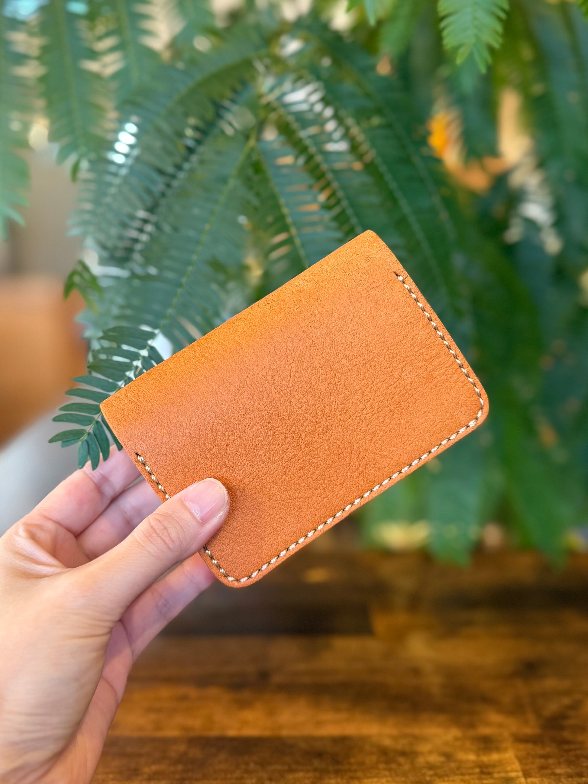 製品はすべて手縫いでお作りしております。ミシン縫製よりステッチが美しく、ひと針ひと針糸を締めながら縫っているのでとても丈夫な作りになっています。