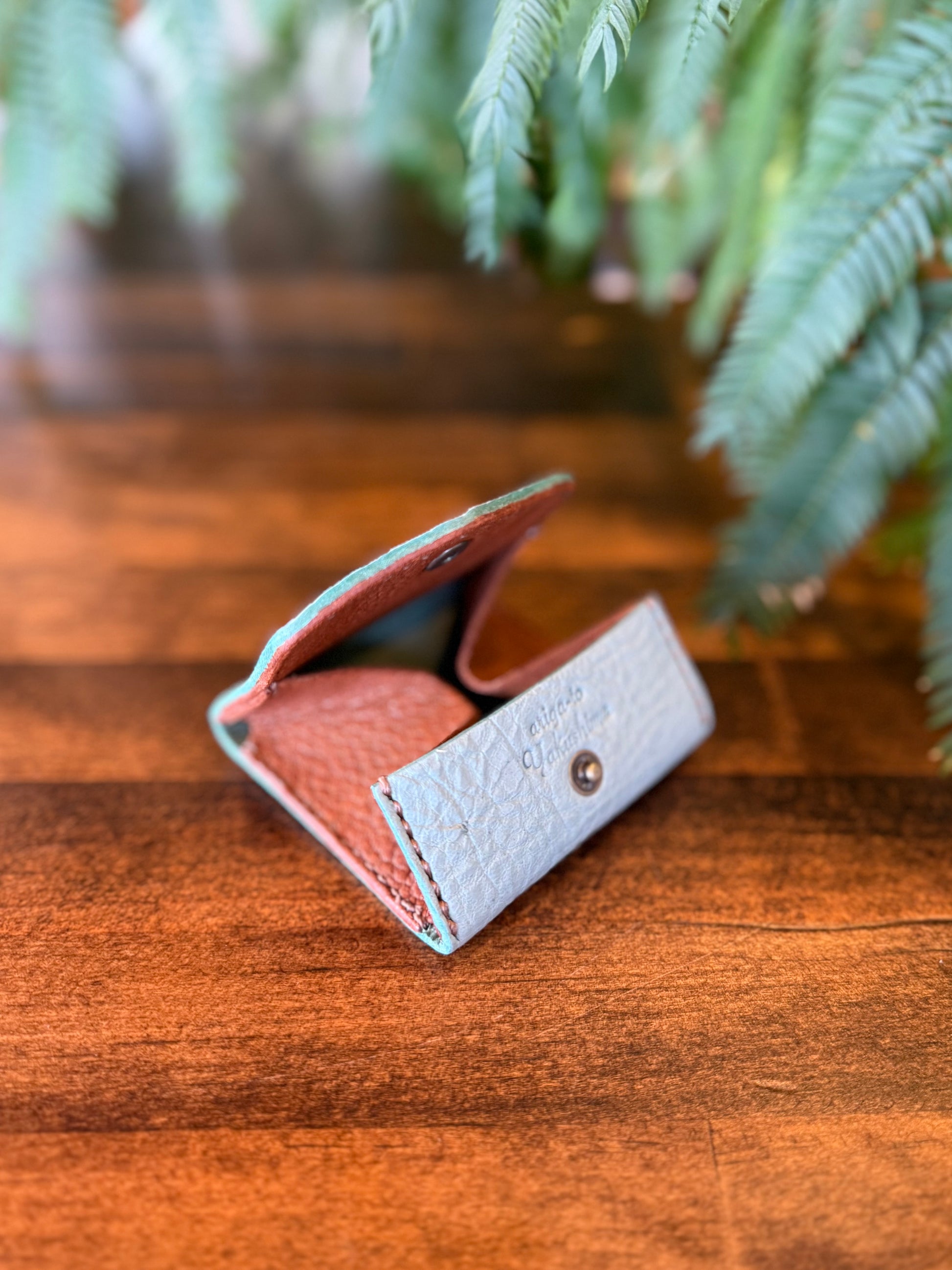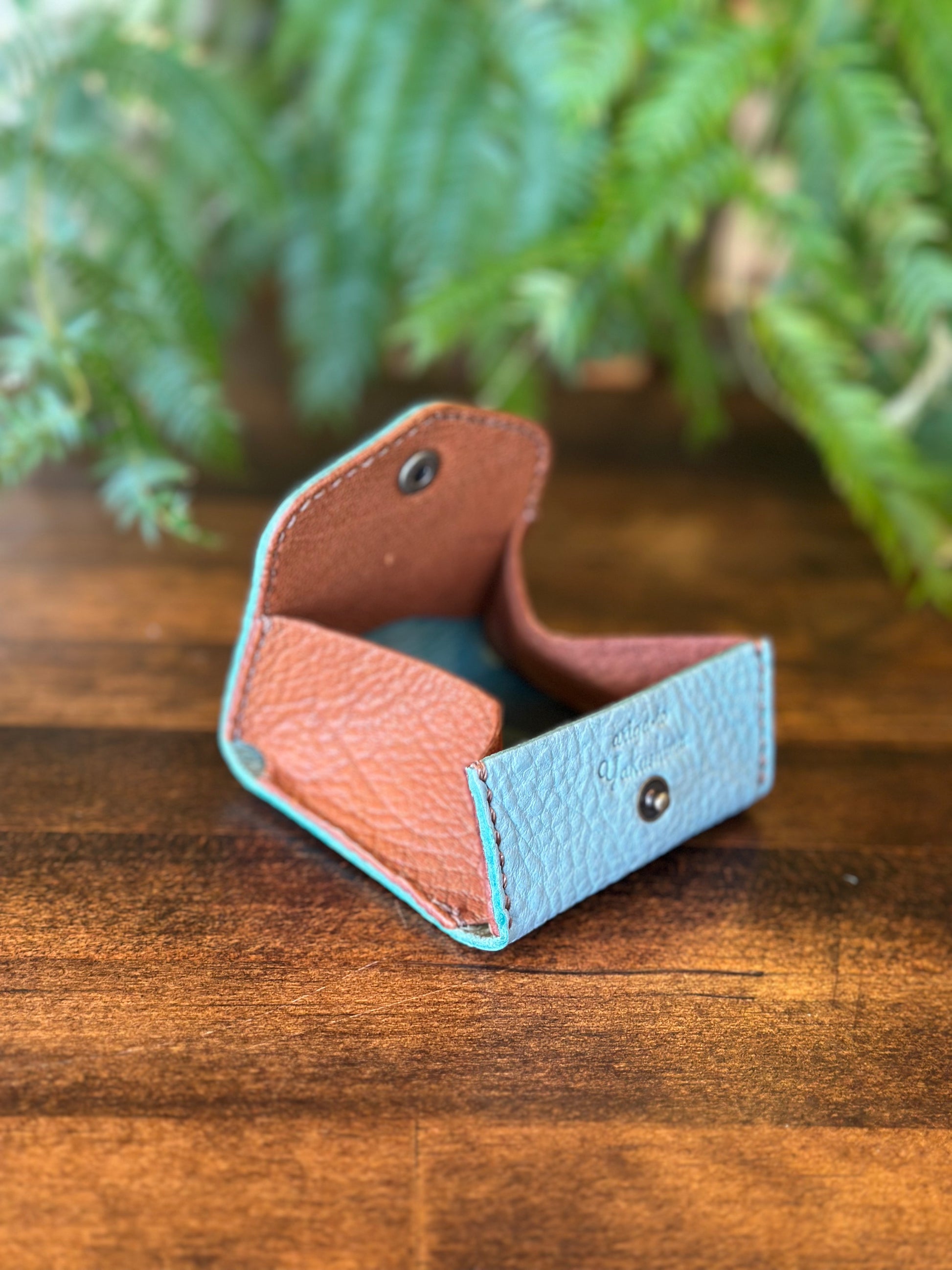 【屋久鹿×京鹿】BOX型コインケース(ターコイズ×ブラウン)