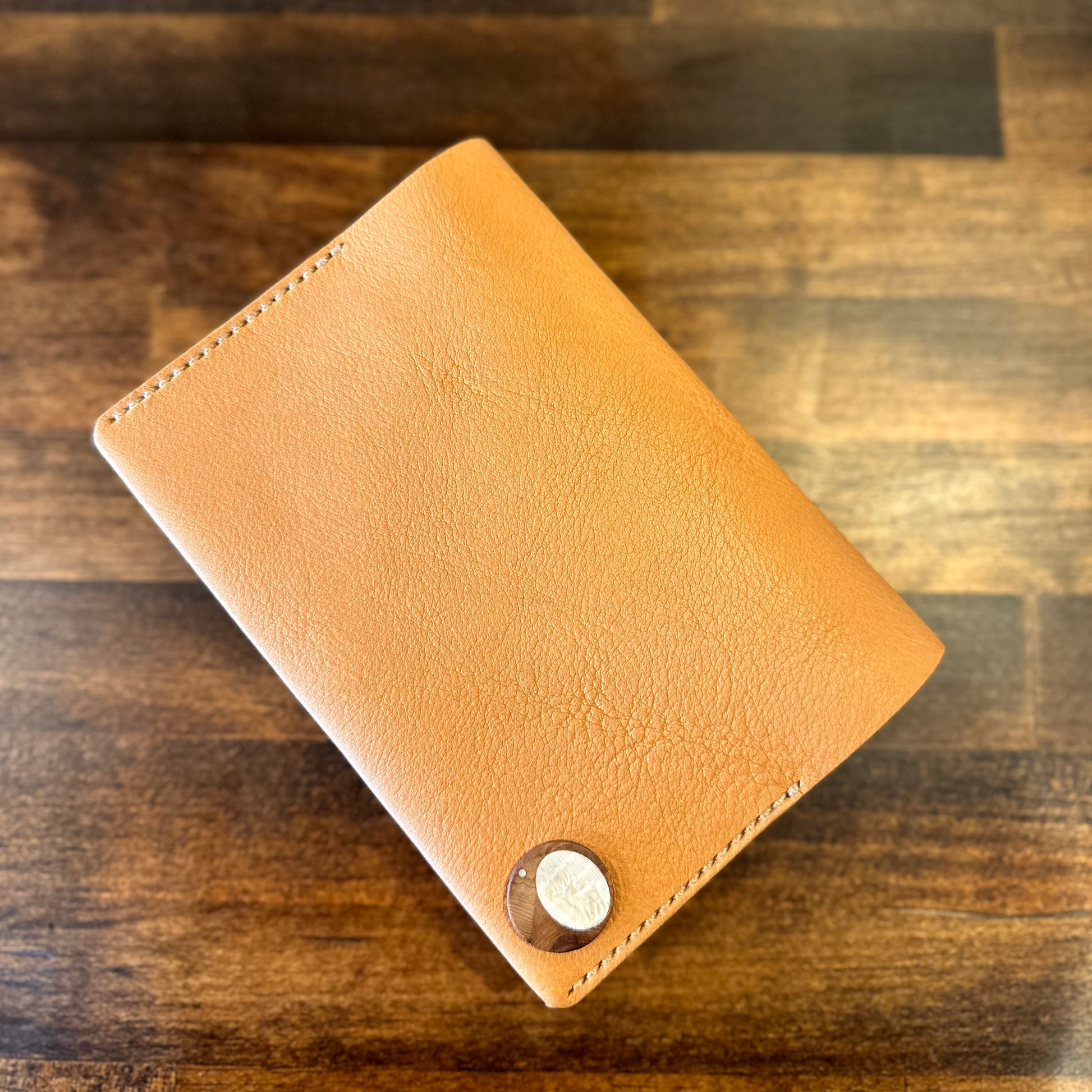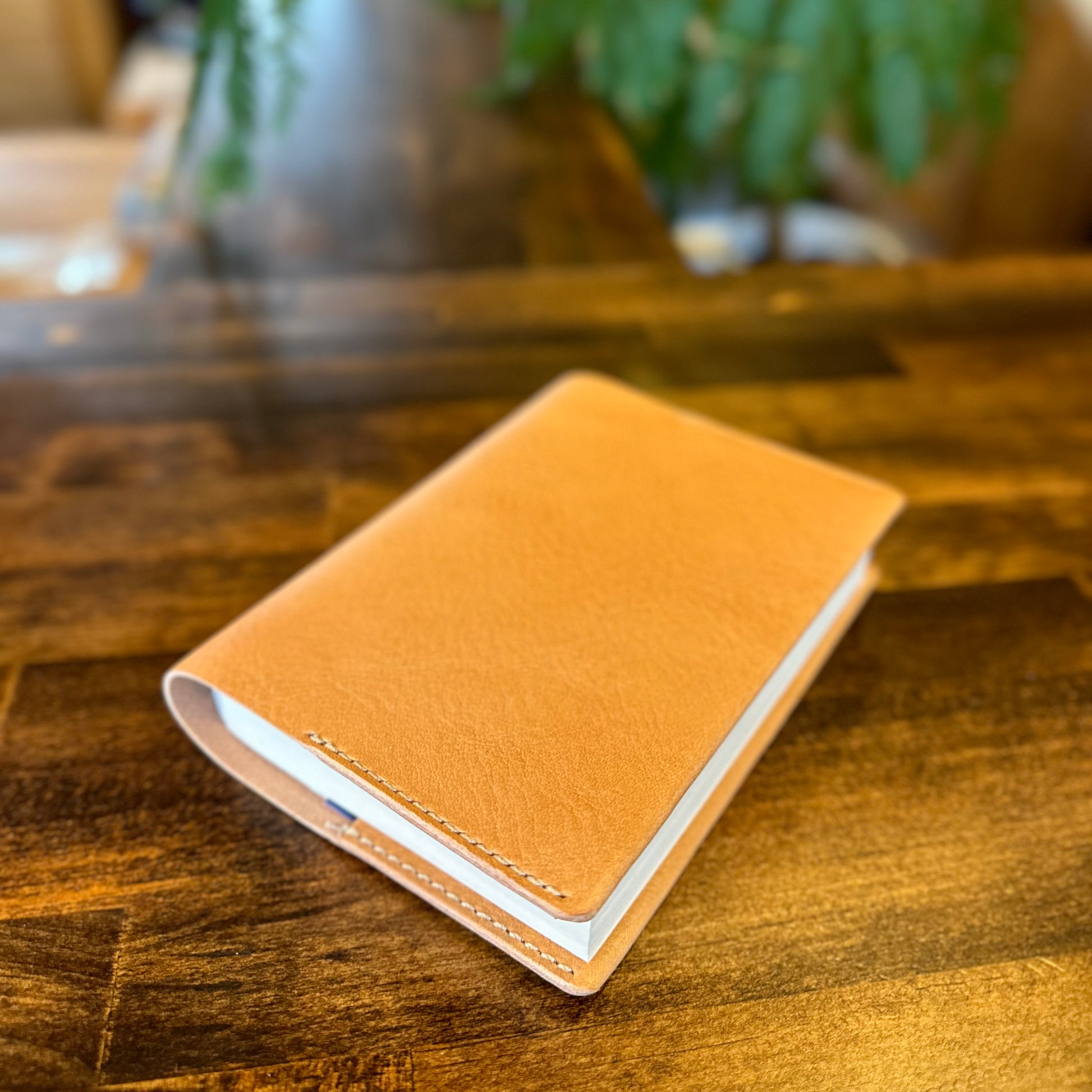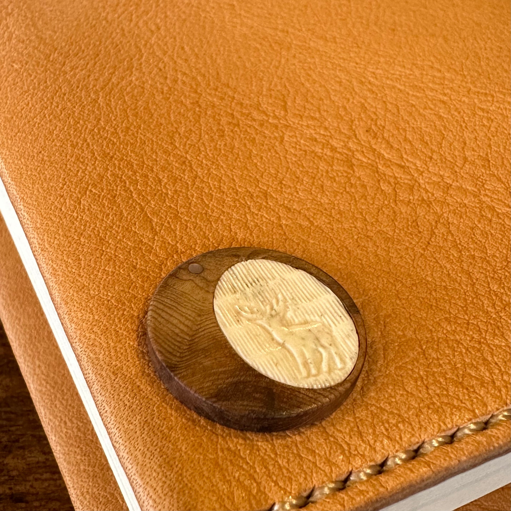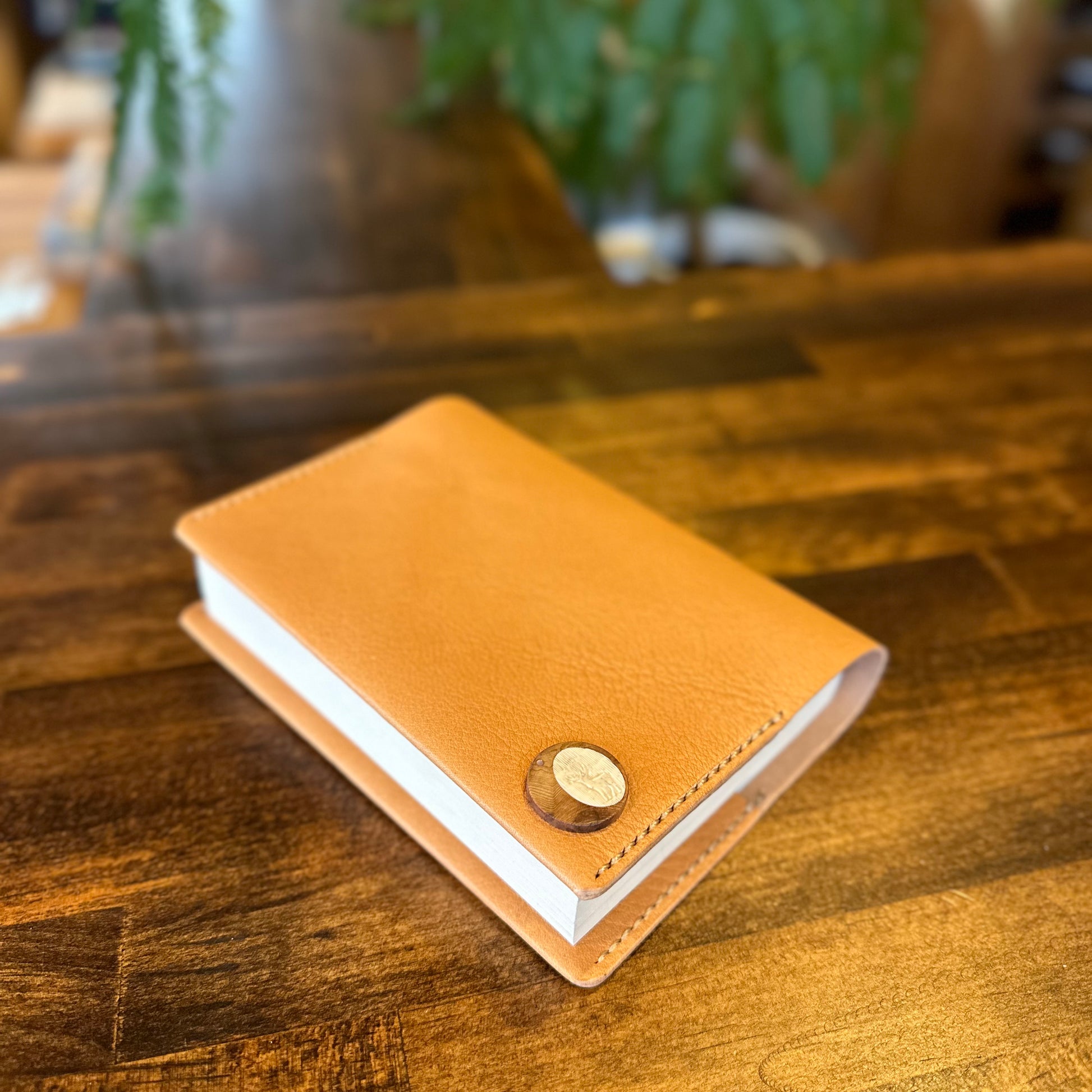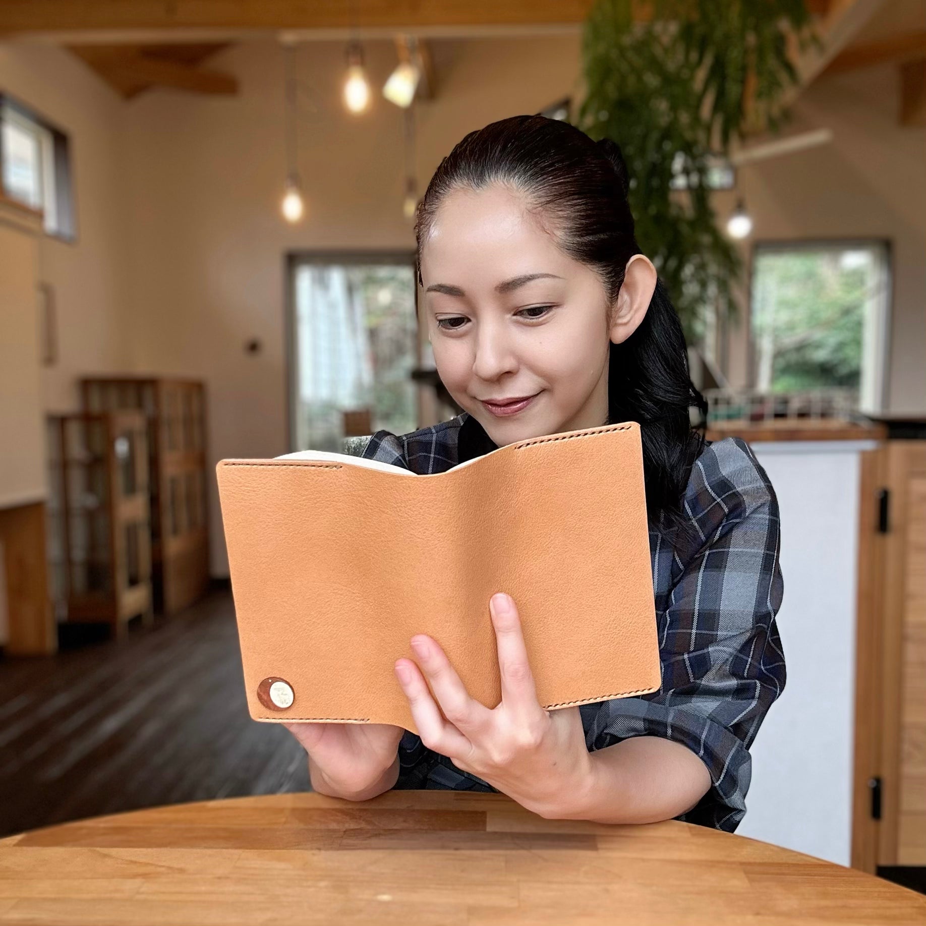 文庫本カバー・ナチュラル(栃木レザー×屋久杉・屋久鹿のツノ・夜光貝飾りボタン)