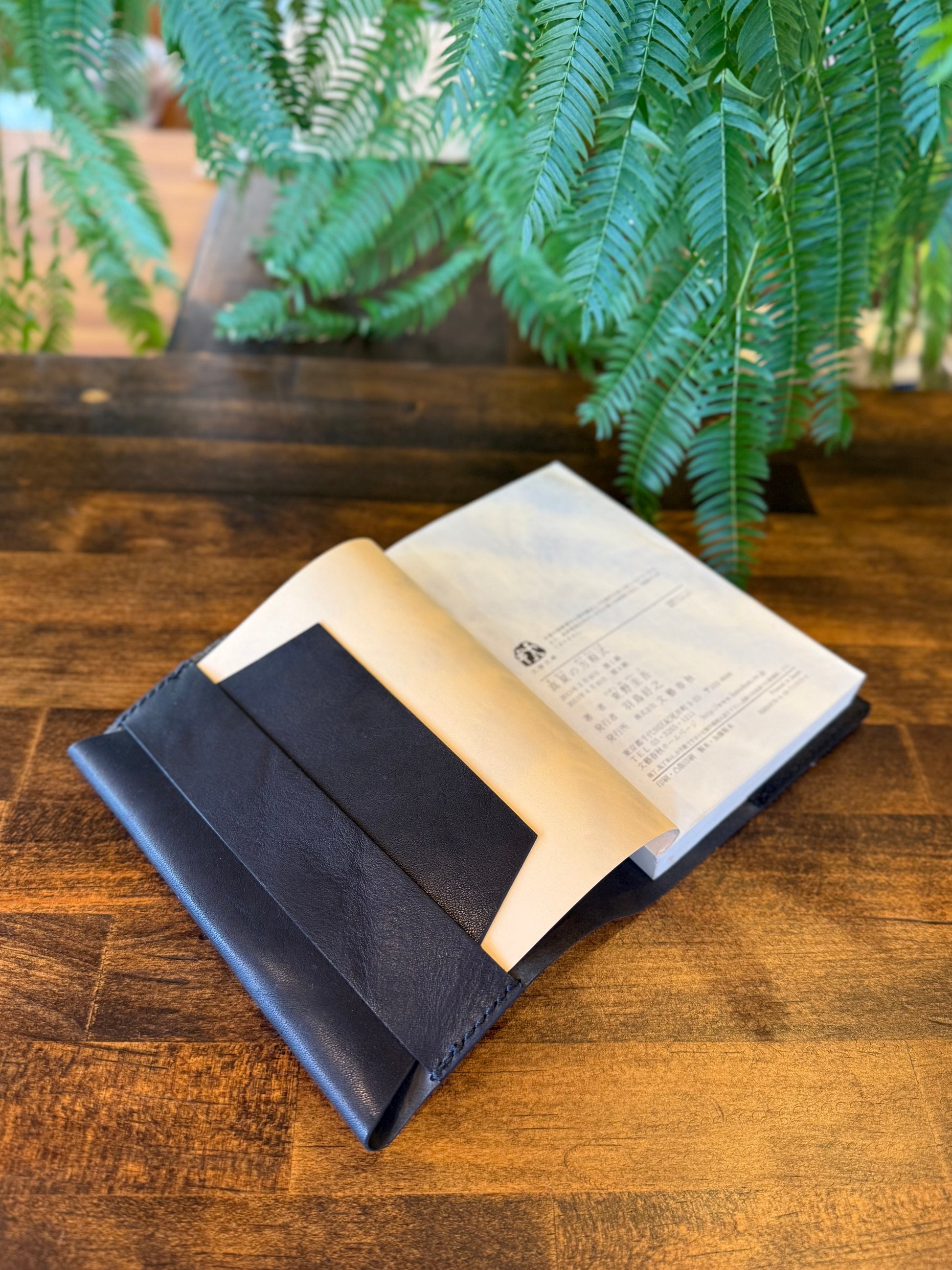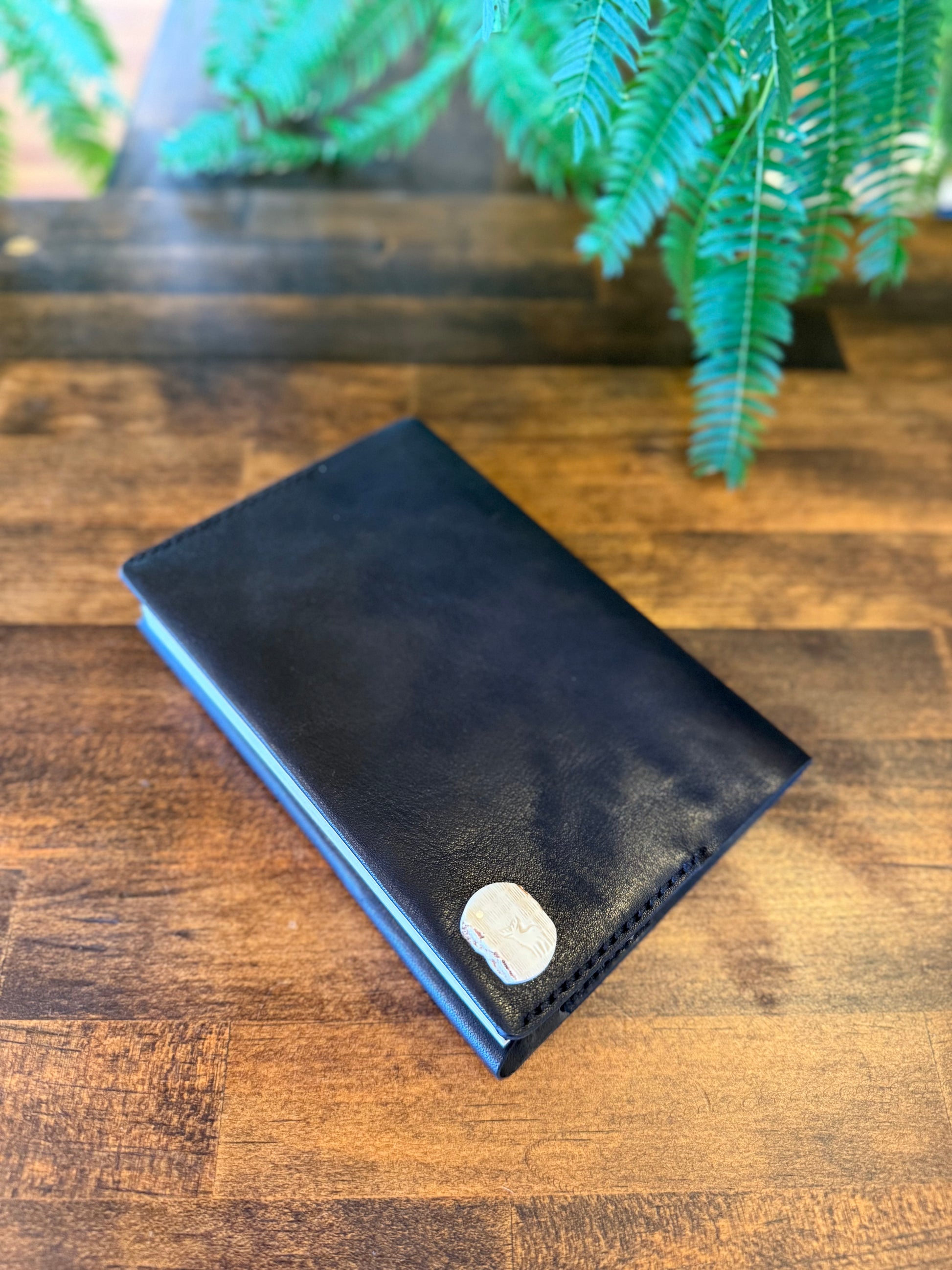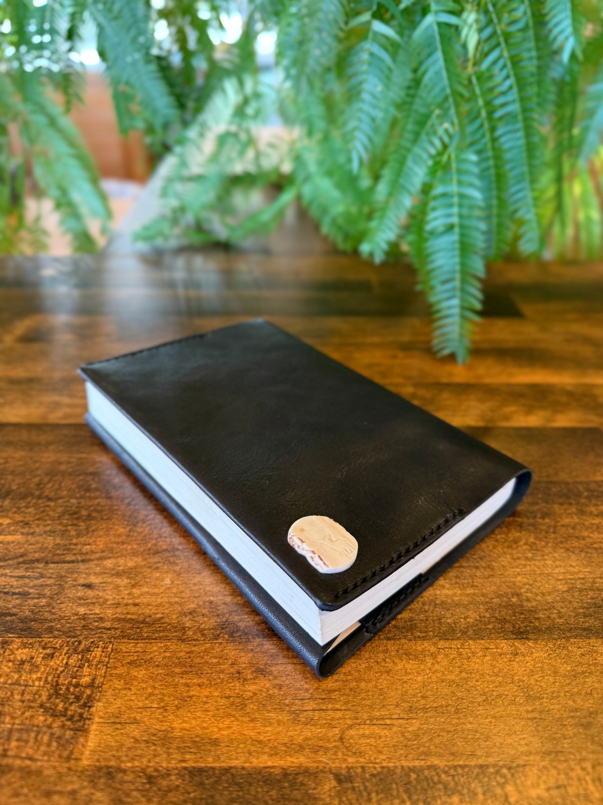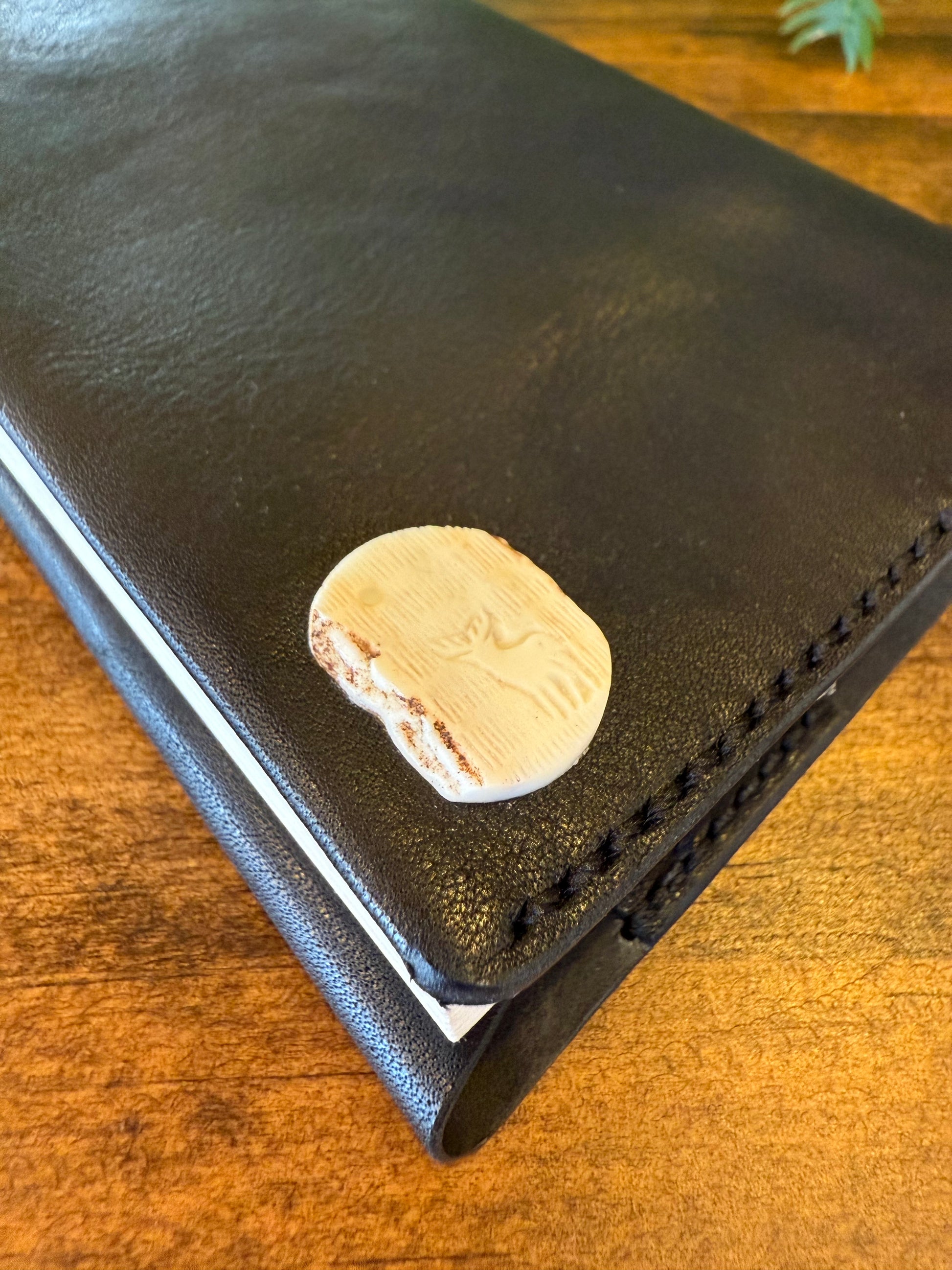 文庫本カバー・ブラック (栃木レザー×屋久鹿のツノ・夜光貝飾りボタン)