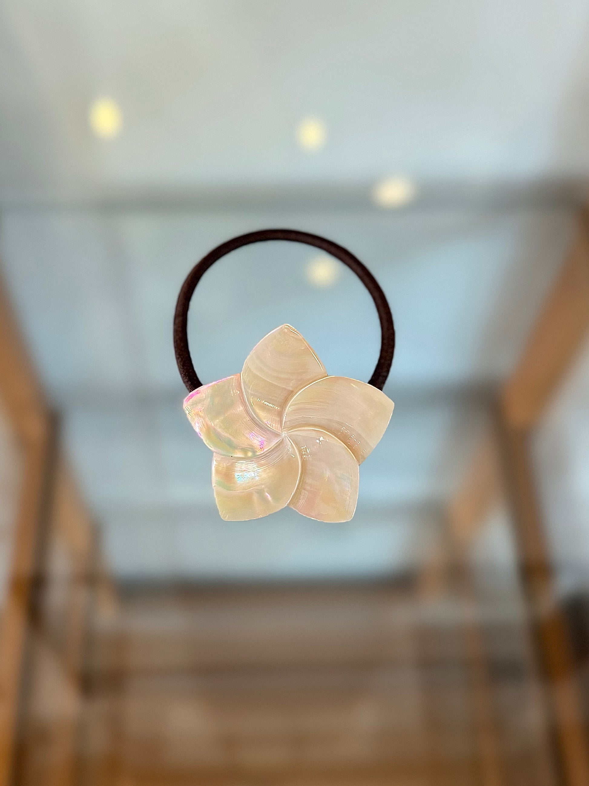 屋久島産・夜光貝のプルメリアのヘアゴム