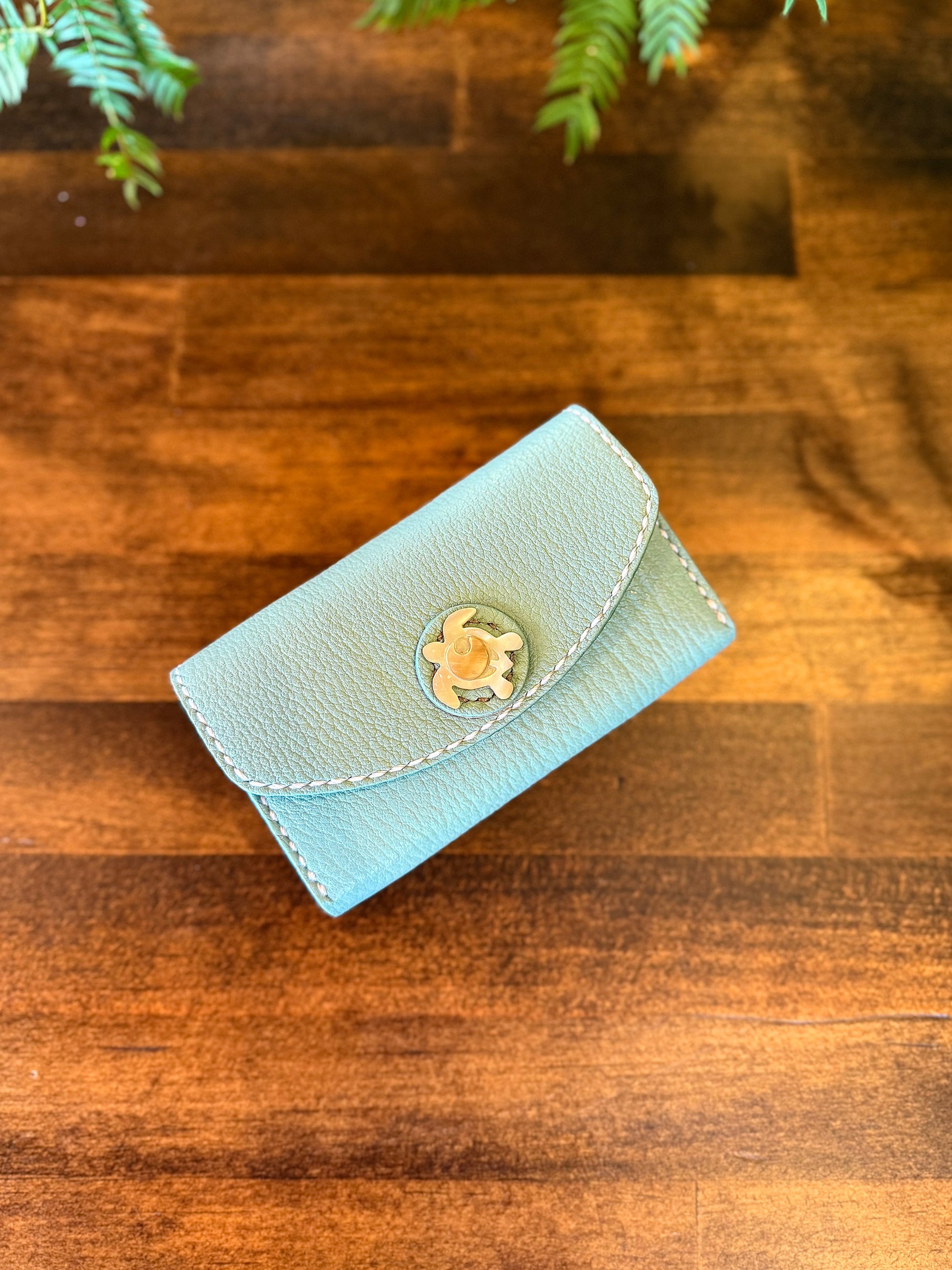 【屋久鹿革】おさいふ名刺入れ (ウミガメ・ターコイズ)