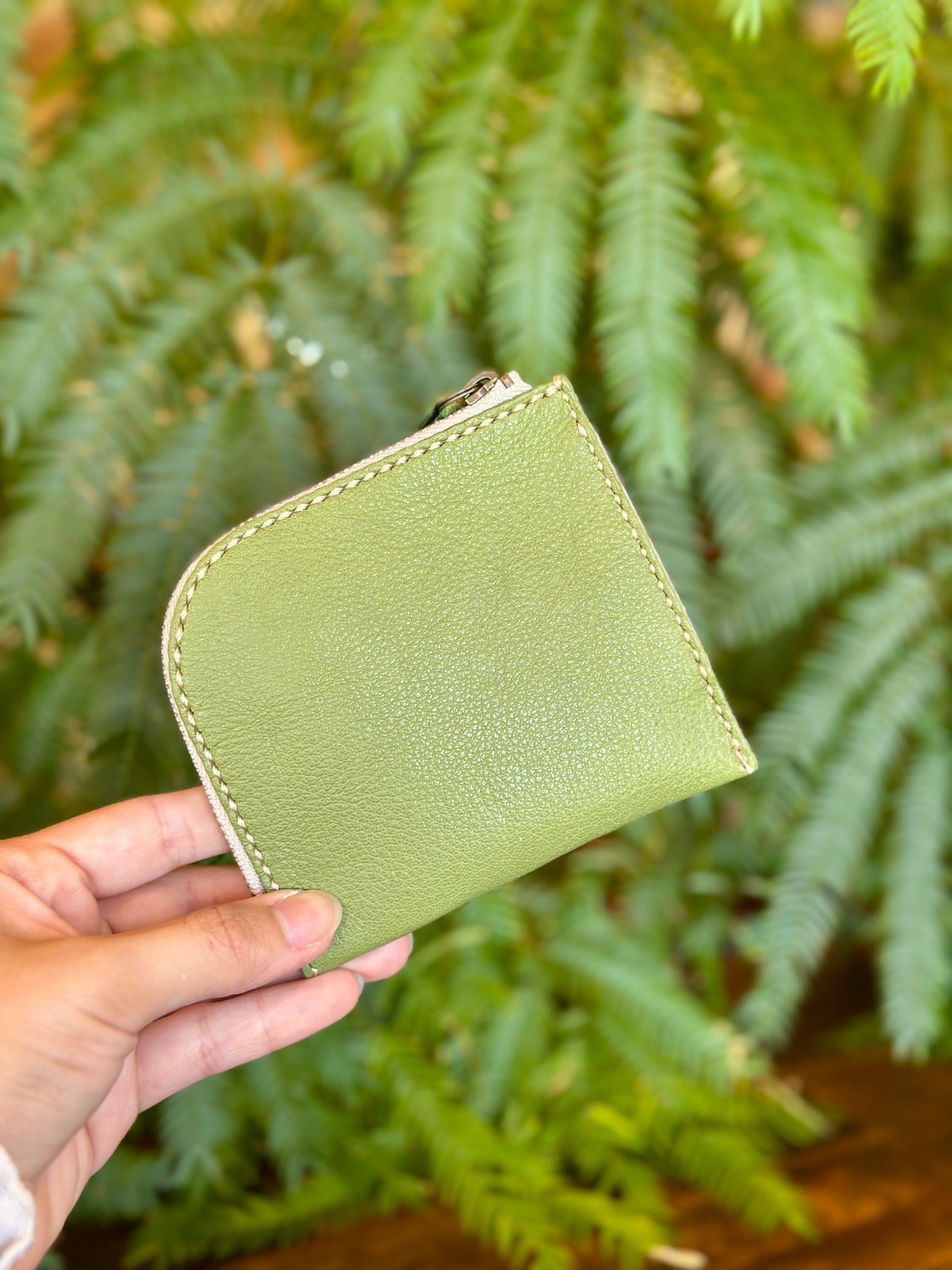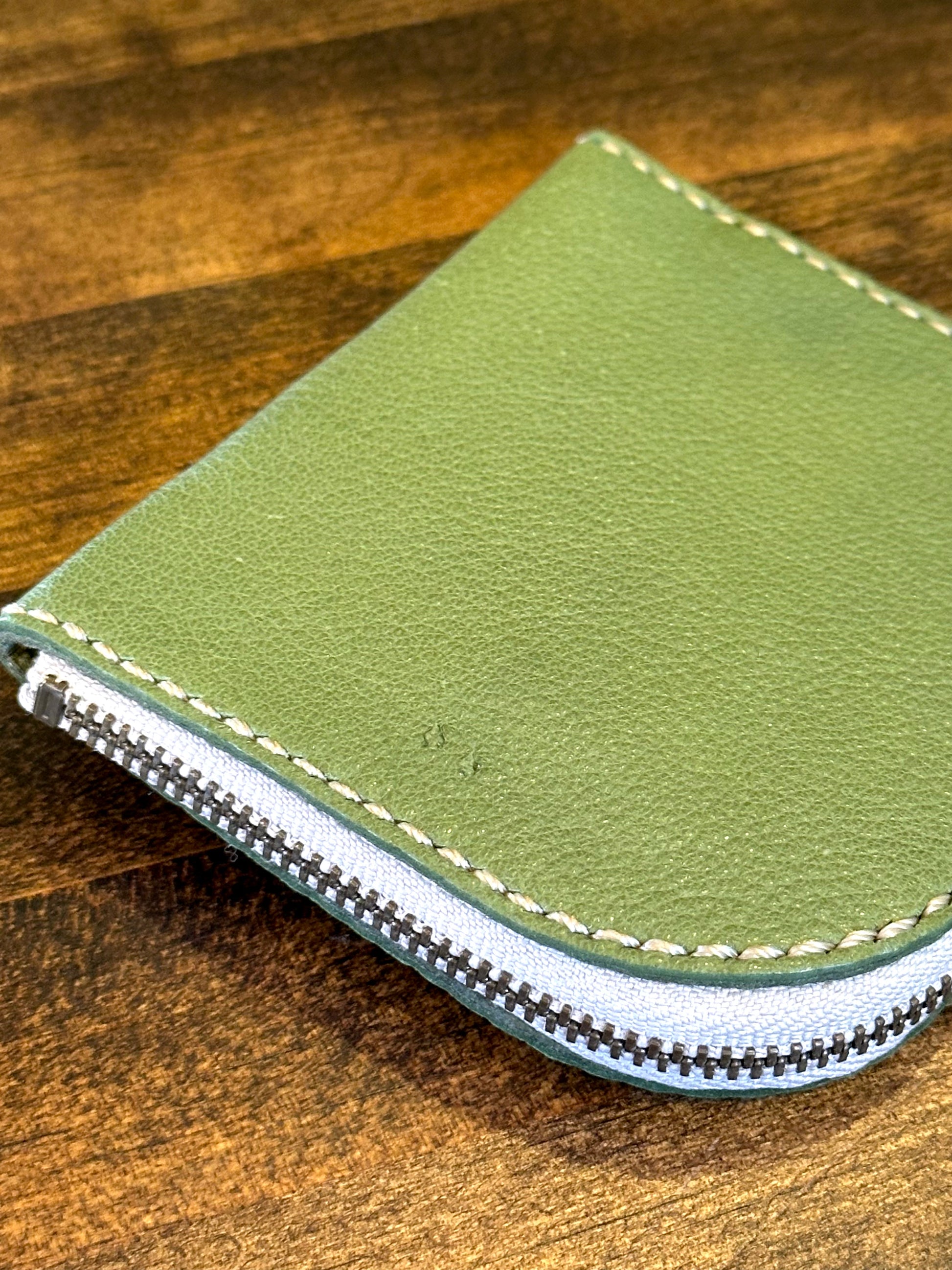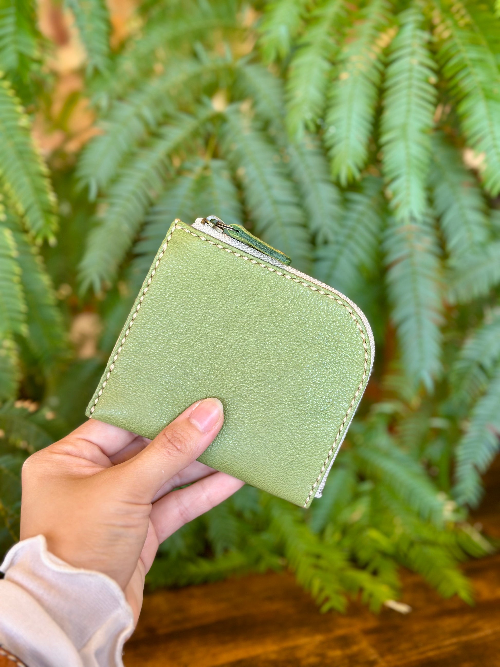 外側・内側の革、ステッチ、飾りボタン…細部までご自身で選んでいただいた「世界にひとつだけの島財布」。